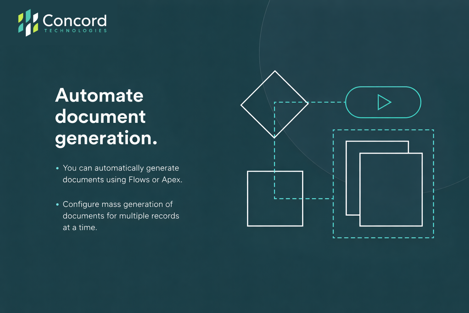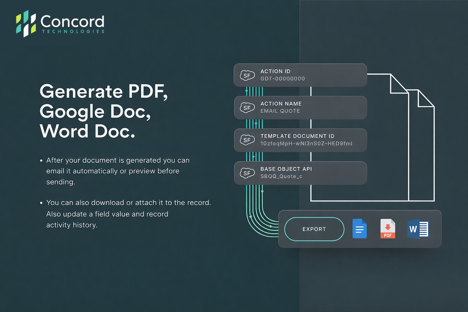 Document GenerationFormerly Opero Documents, now proudly offered by Concord Technologies####Automatically generate PDF, Word, or Google Doc from any Salesforce data based on your templates. After your document is generated you can email it, attach it, or send for esignature.