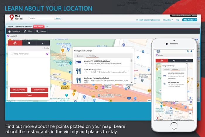 Sales MethodologiesVisualize your Salesforce data with Map Plotter. Take a look at where your customers are located to manage customer visits. You can also optimize your travel routes and vastly improve your marketing campaigns.