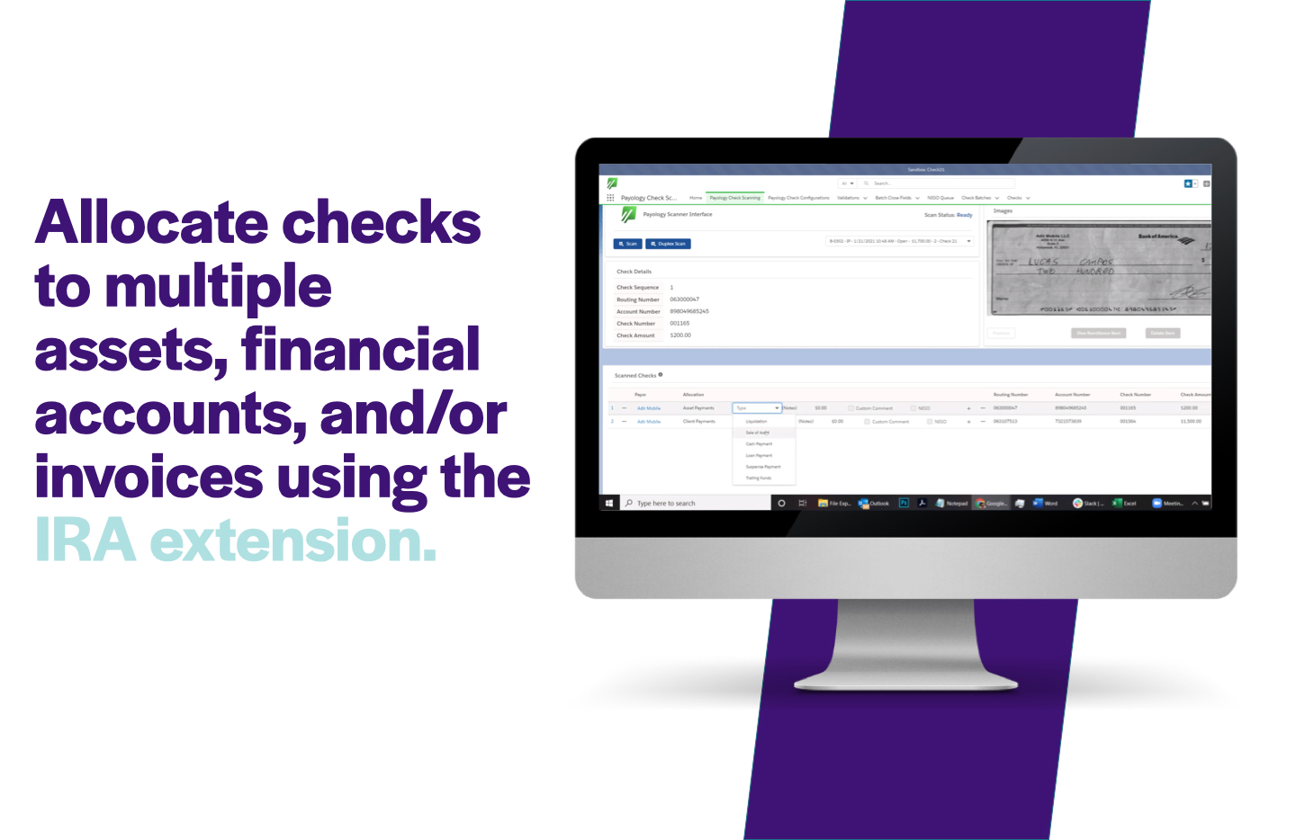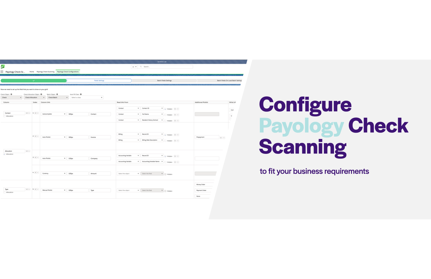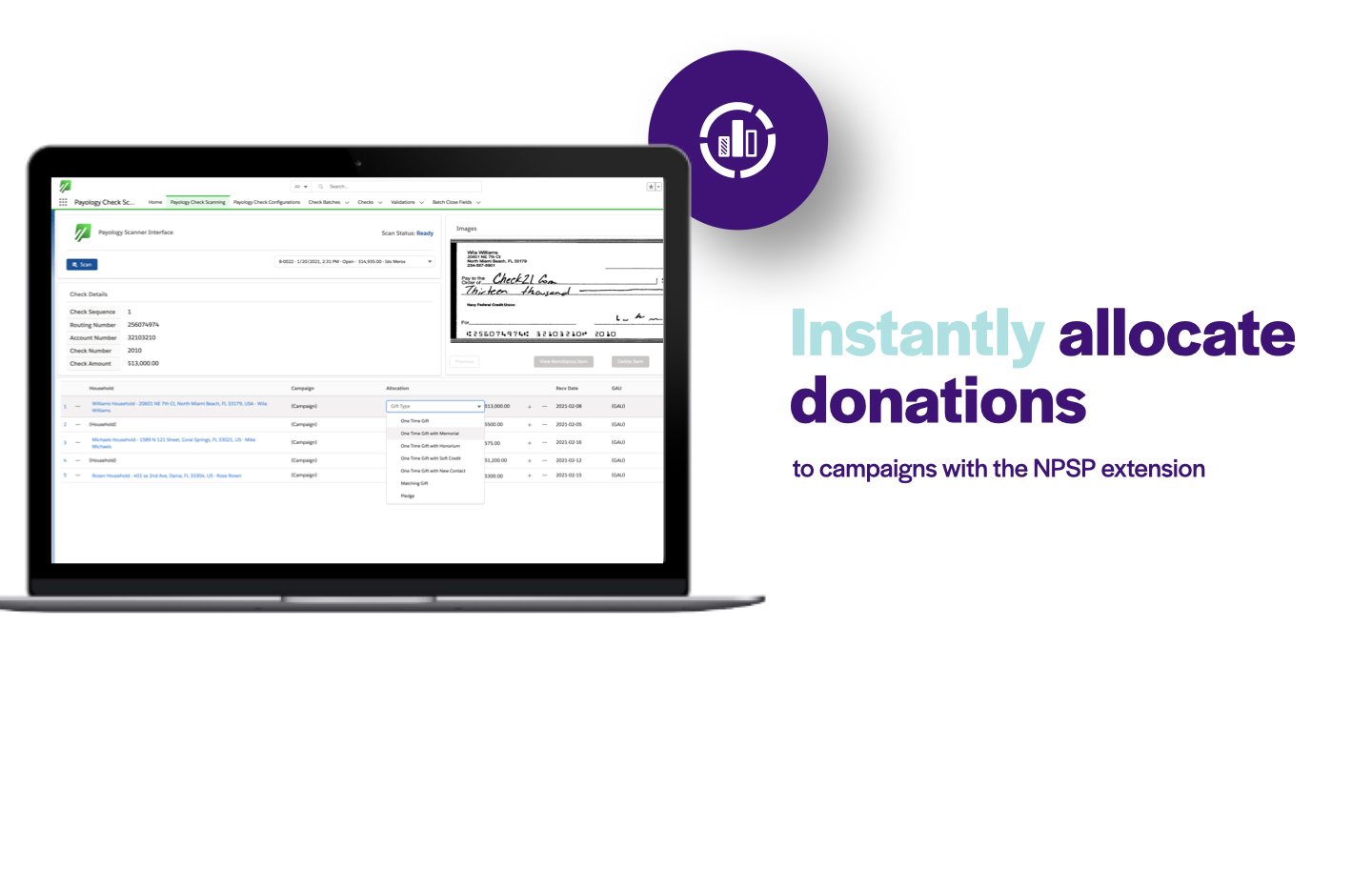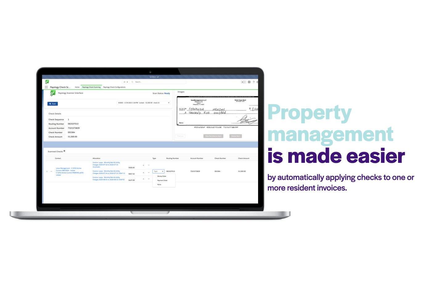 Payment ProcessingScan checks directly into Salesforce, apply them to any records you choose, and transmit them to your banking institution for deposit. Flexible configuration to support all business requirements.
