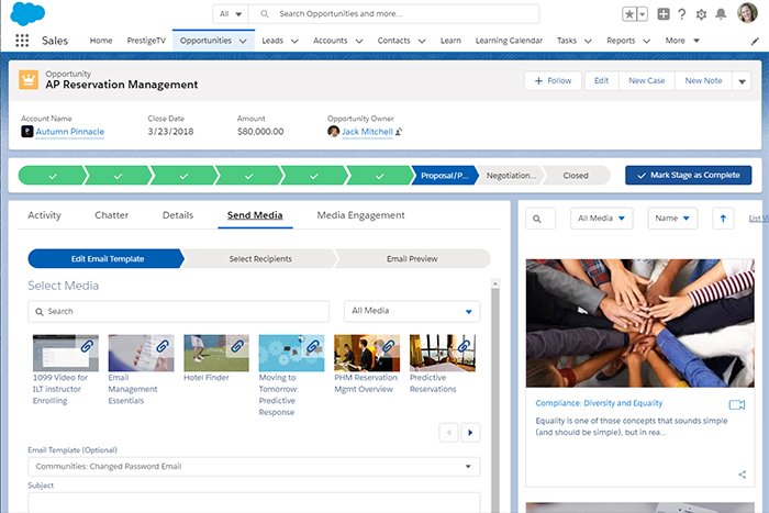 Chat & Web ConferencingDeliver (and track!) video, e-learning, PPT, PDF, and other media across your Sales Cloud, Service Cloud, or Communities. Then analyze the engagement and impact of your content, natively in Salesforce.