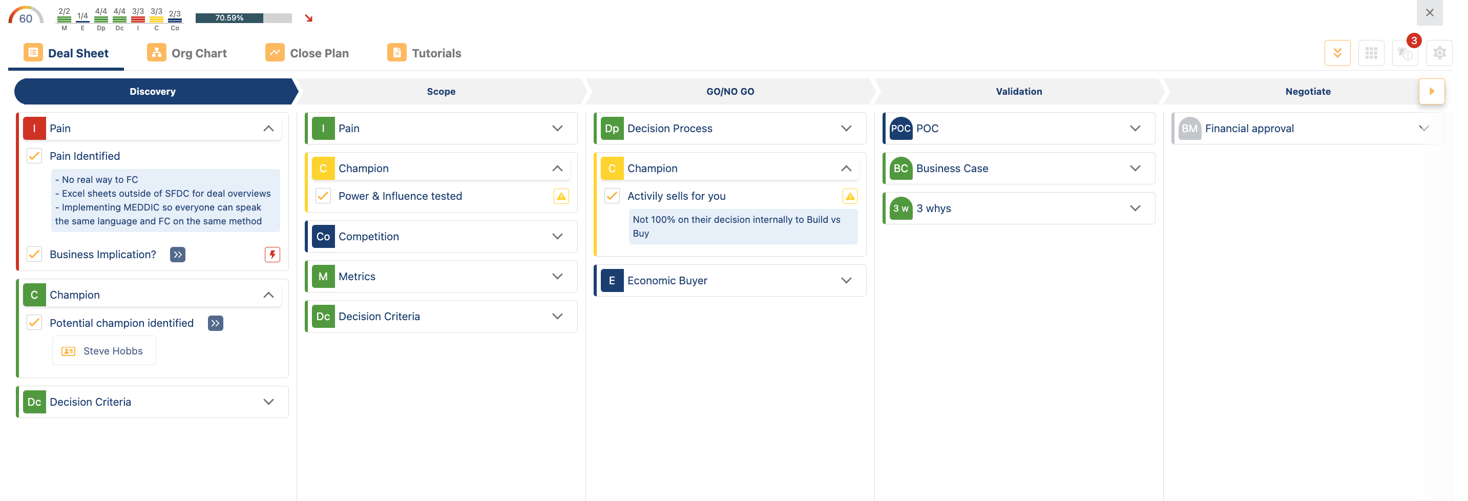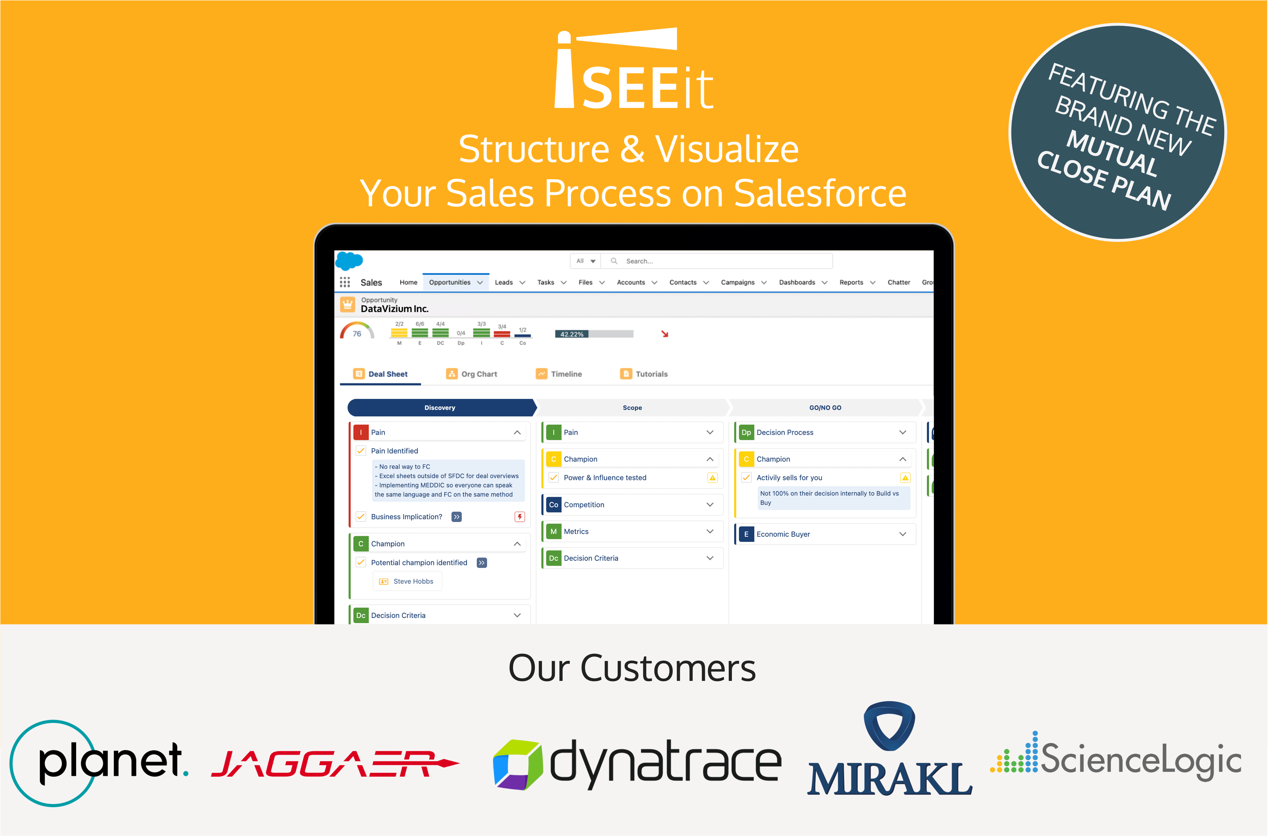 SalesiSEEit is like a GPS for sales teams - showing you where you are and how to navigate to close the deal.####Operationalize MEDDIC (or any sales methodology) on Salesforce.com, and visualize you sales process with this native Salesforce app.