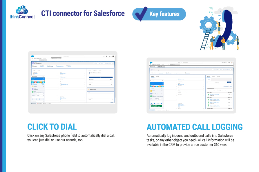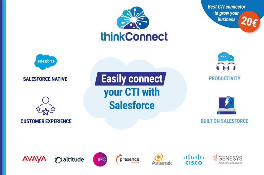 TelephonythinkConnect is a Salesforce native CTI integration app that connects almost any PBX with your CRM objects. An open CTI solution that gives you the chance to configure and customize a fully CRM integrated console and Softphone for Salesforce agents.