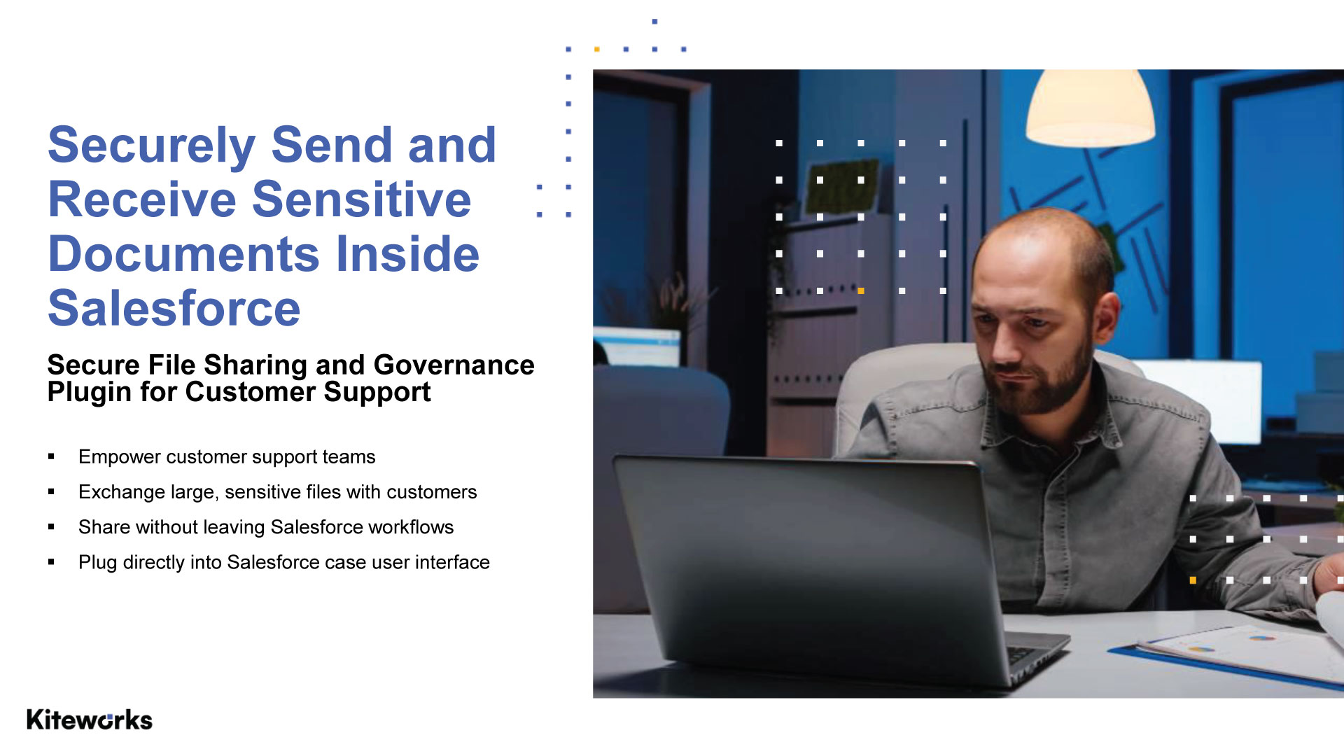 Starting at $8.33 USD per user per month Kiteworks for Salesforce is a licensed per user add-on to the Kitework's Enterprise Package.