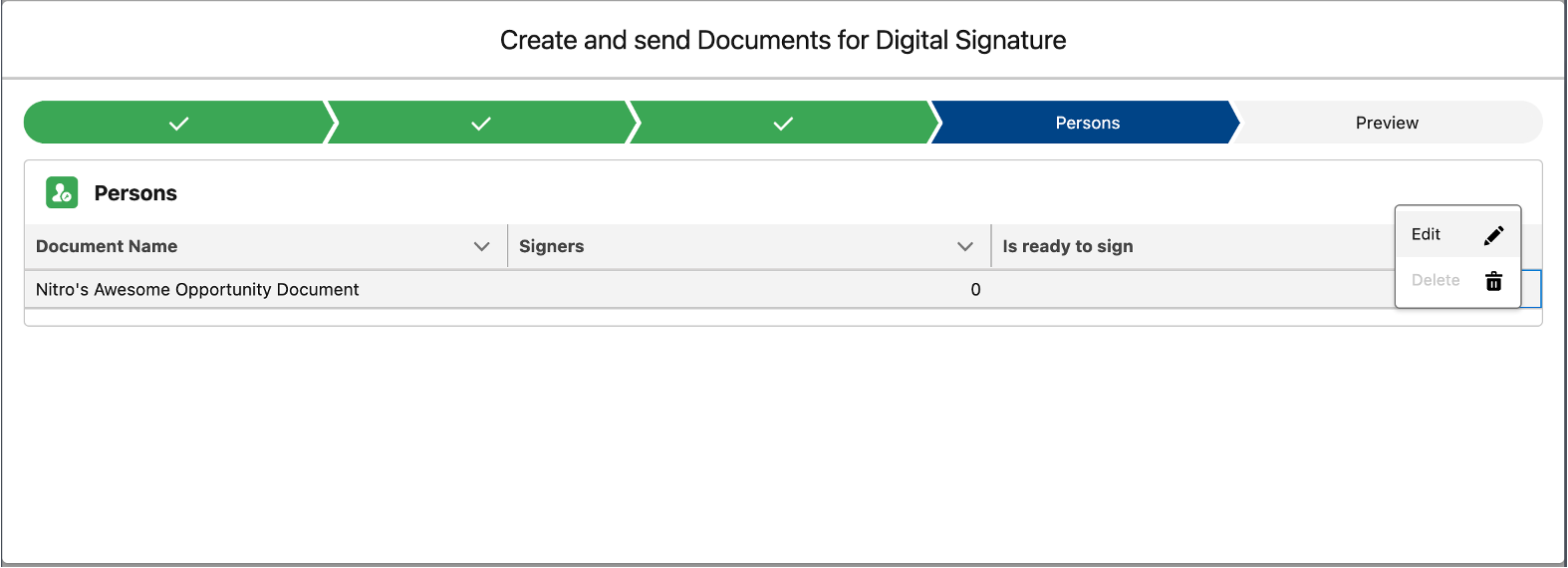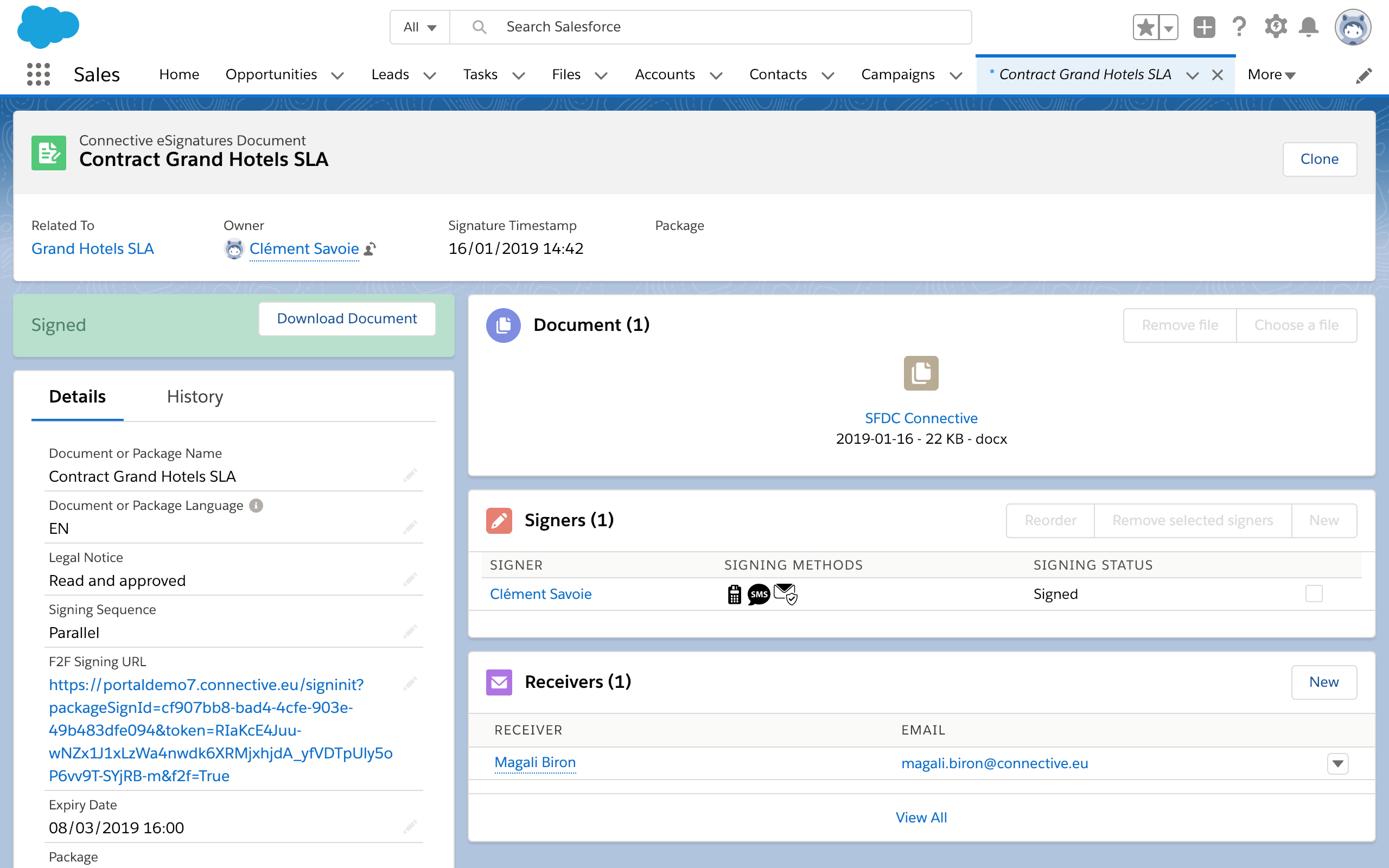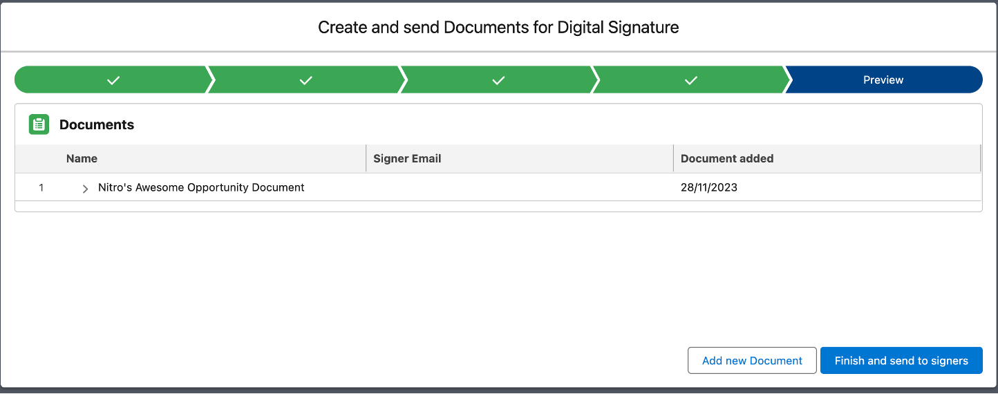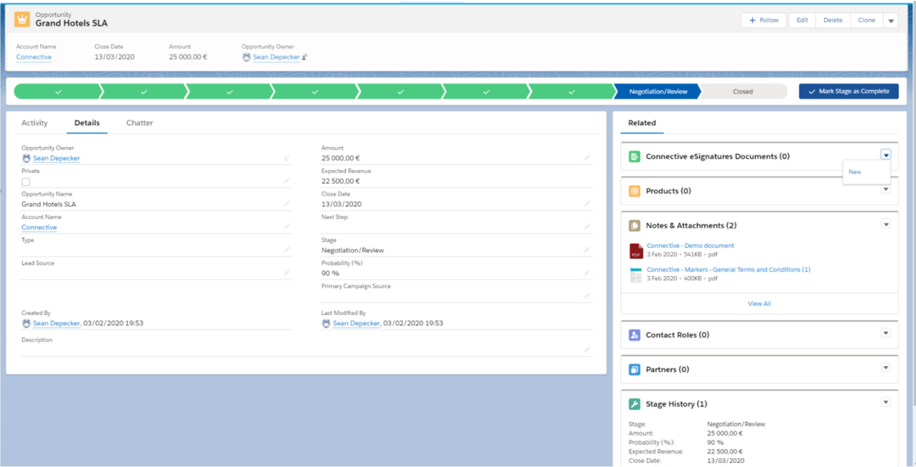 Contract ManagementWith this Salesforce integration you can easily send out all your documents directly from salesforce to any Salesforce contacts and let them sign using Nitro Sign Enterprise Verified. Pending contracts can be directly followed up in Salesforce.