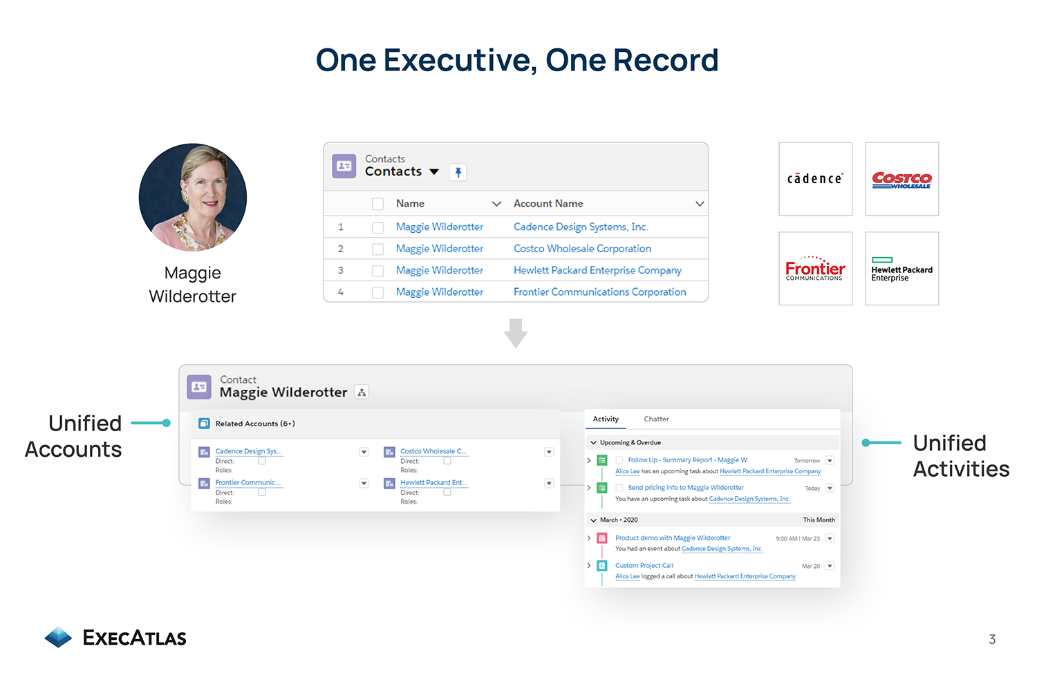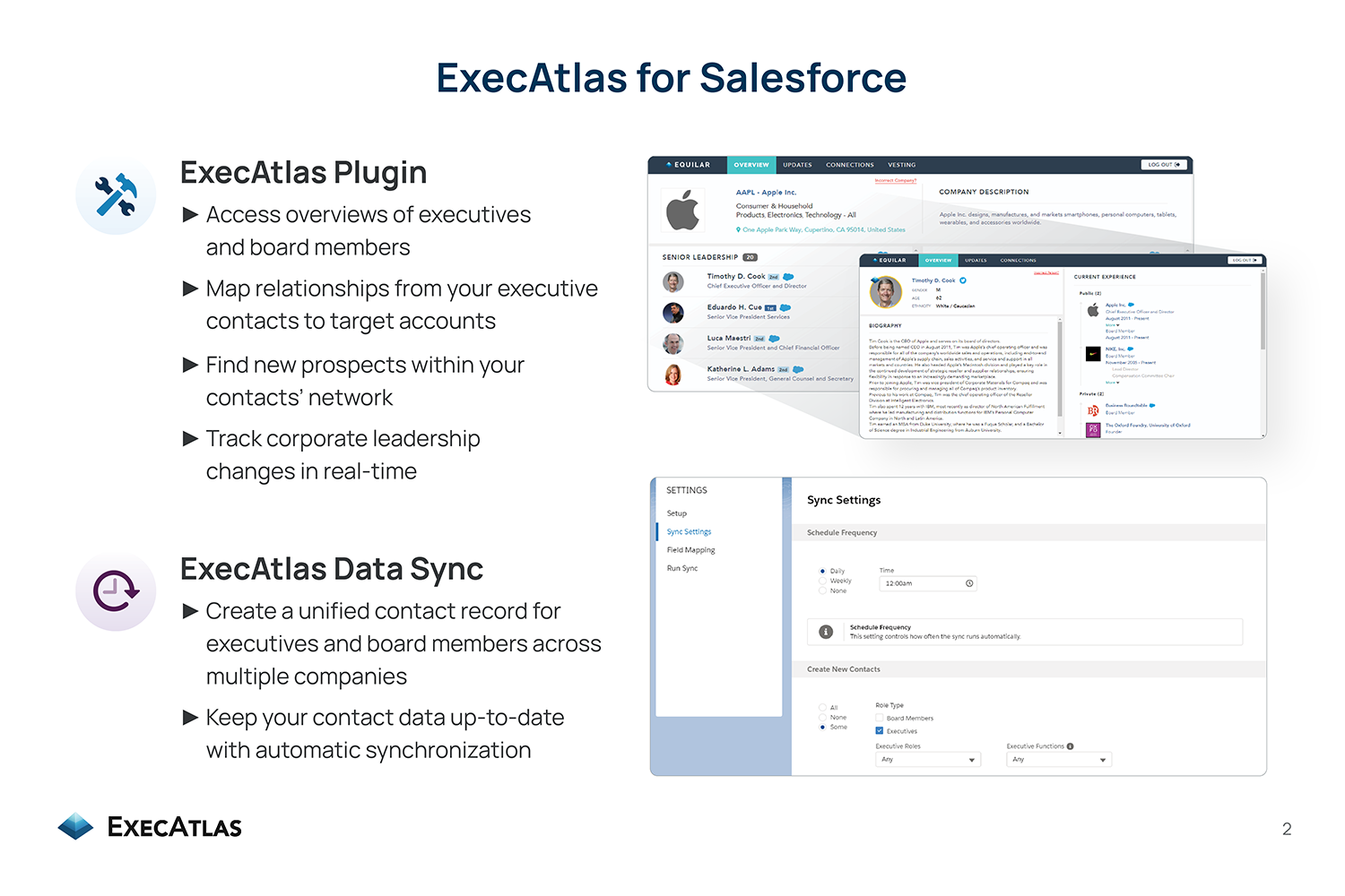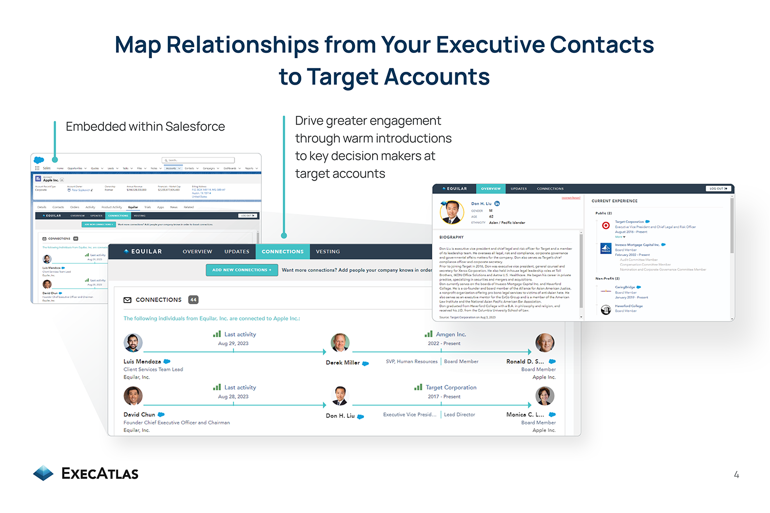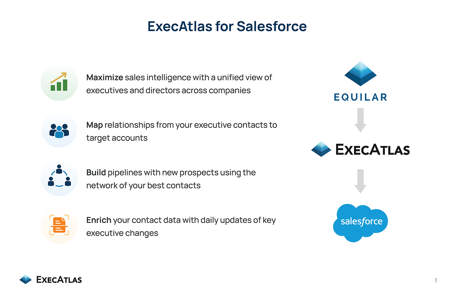 SalesExecAtlas for Salesforce delivers relationship mapping and executive intelligence. It integrates with Salesforce, providing a 360-degree view of decision-makers and uncovering warm introductions to help teams drive growth at key accounts.