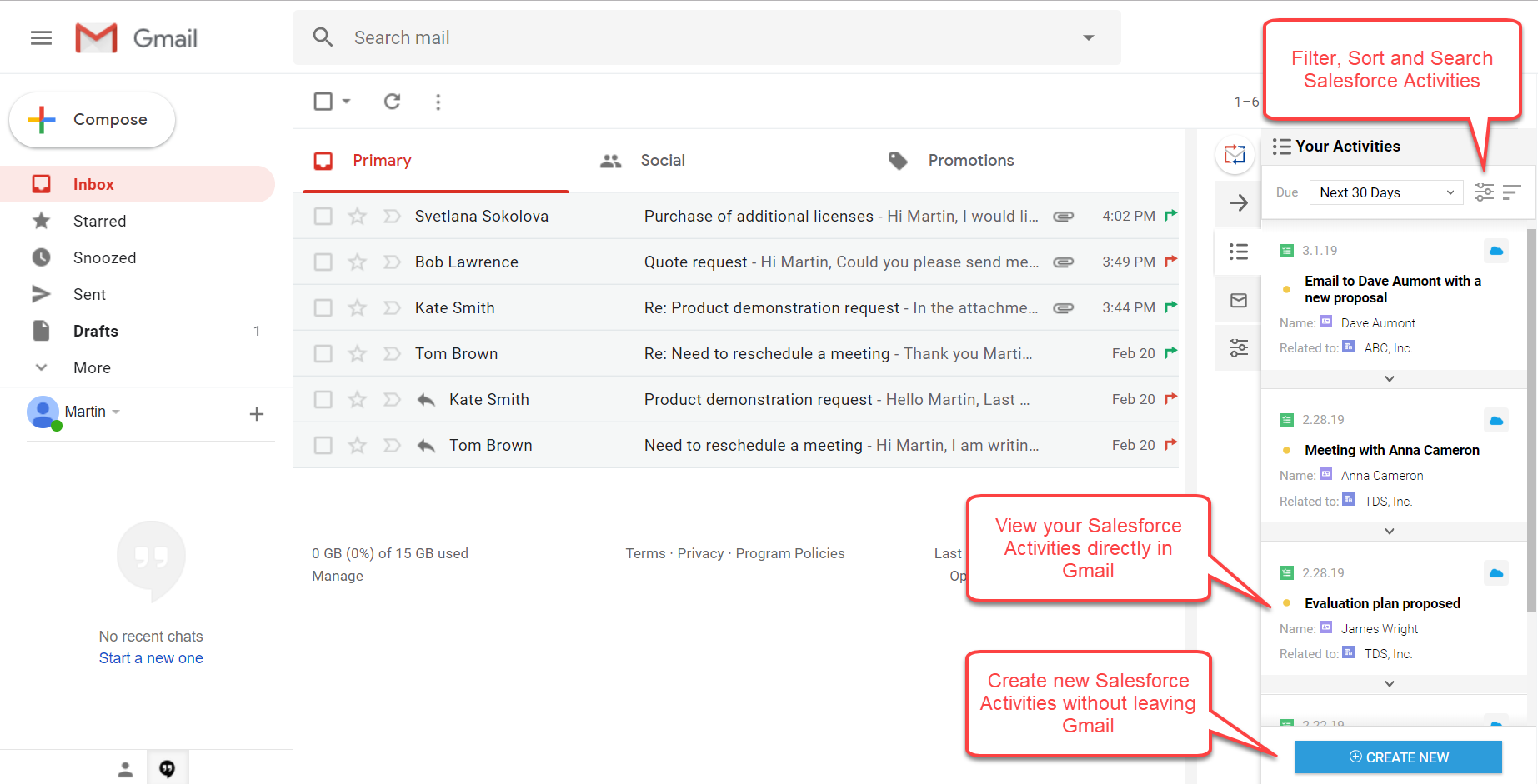 Email & Calendar Sync✓ Chrome extension which allows to integrate Gmail, Google Calendar and Salesforce##✓ Sync emails and attachments from Gmail to any Salesforce record##✓ 2-way sync between Google Calendar and Salesforce##✓ Download a full-featured FREE 14-day trial today
