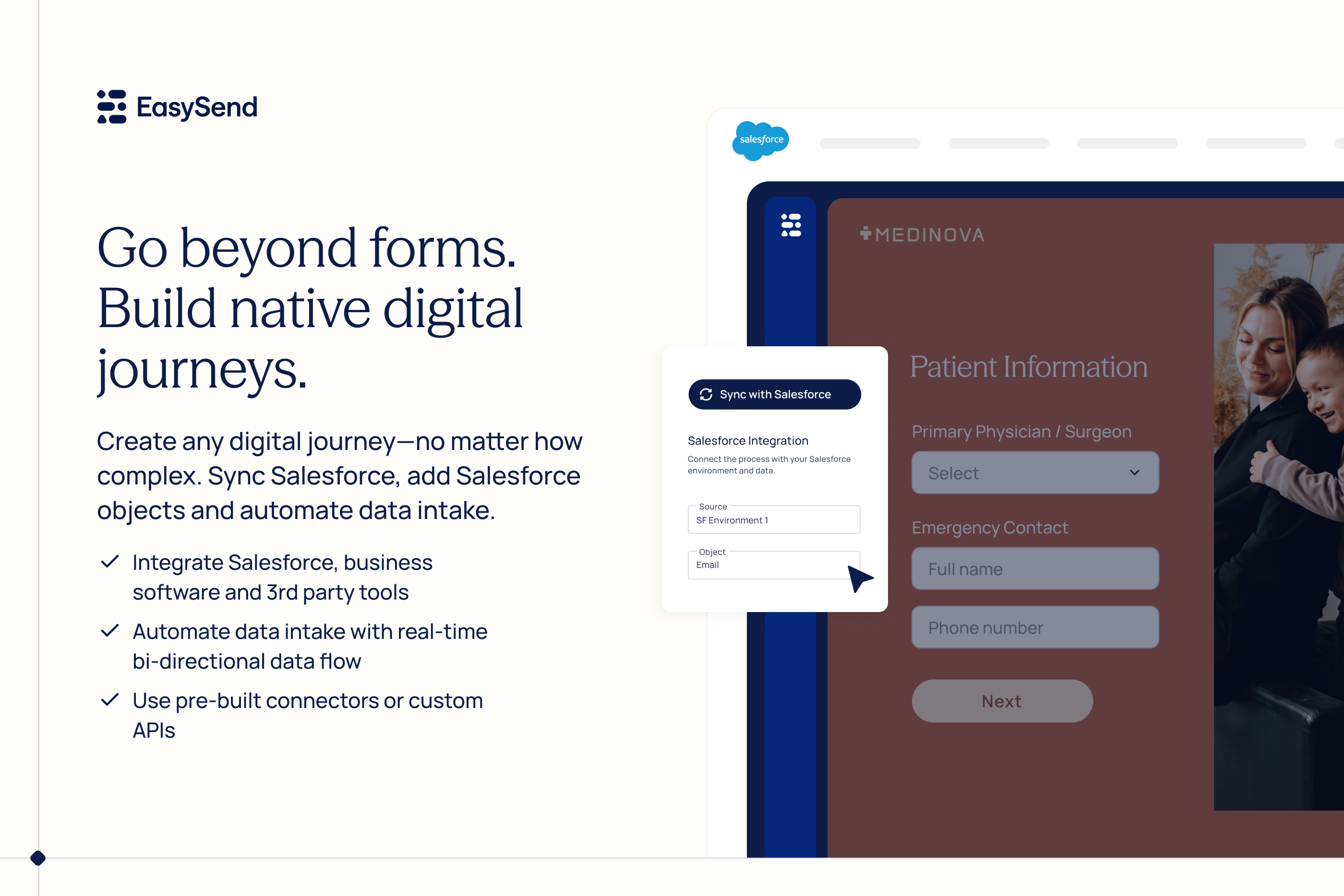 Free EasySend offers the easiest Salesforce integration on the market. Connect to your Salesforce CRM to launch digital journeys, track progress & sync data. Requires: Salesforce account, EasySend account, & app. Start your free trial—paid app after trial.