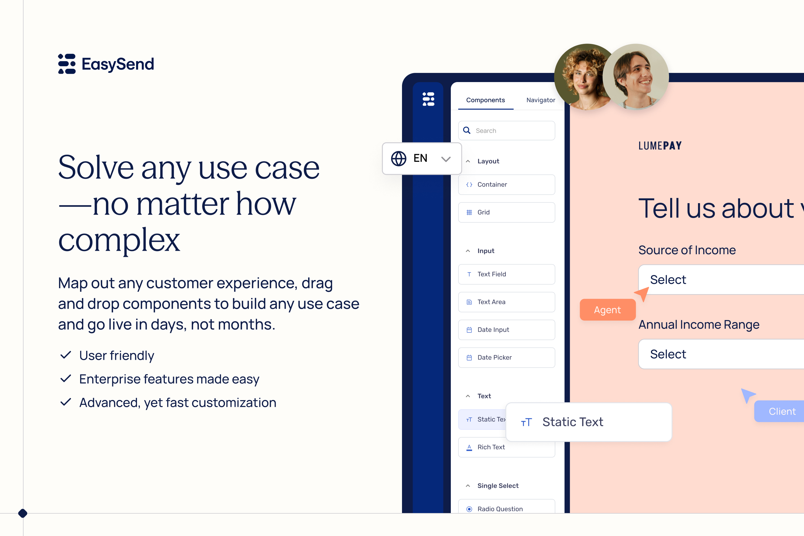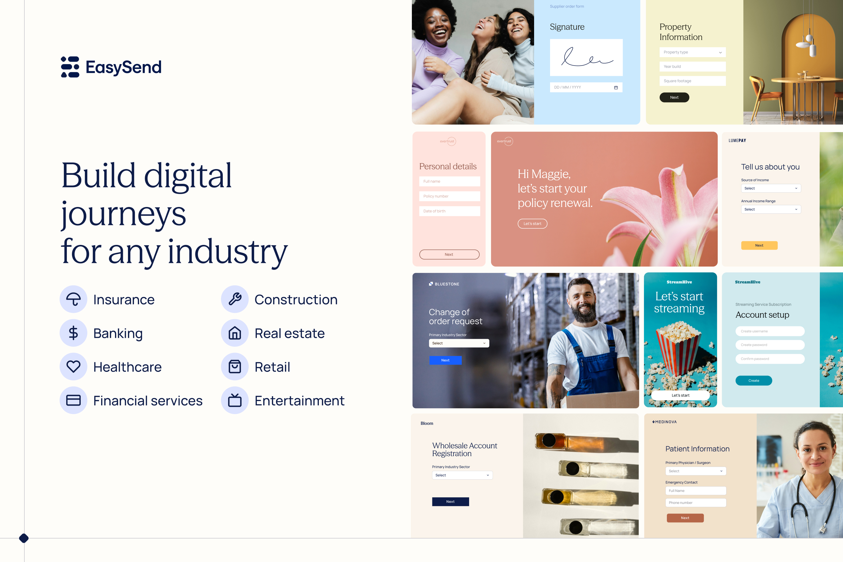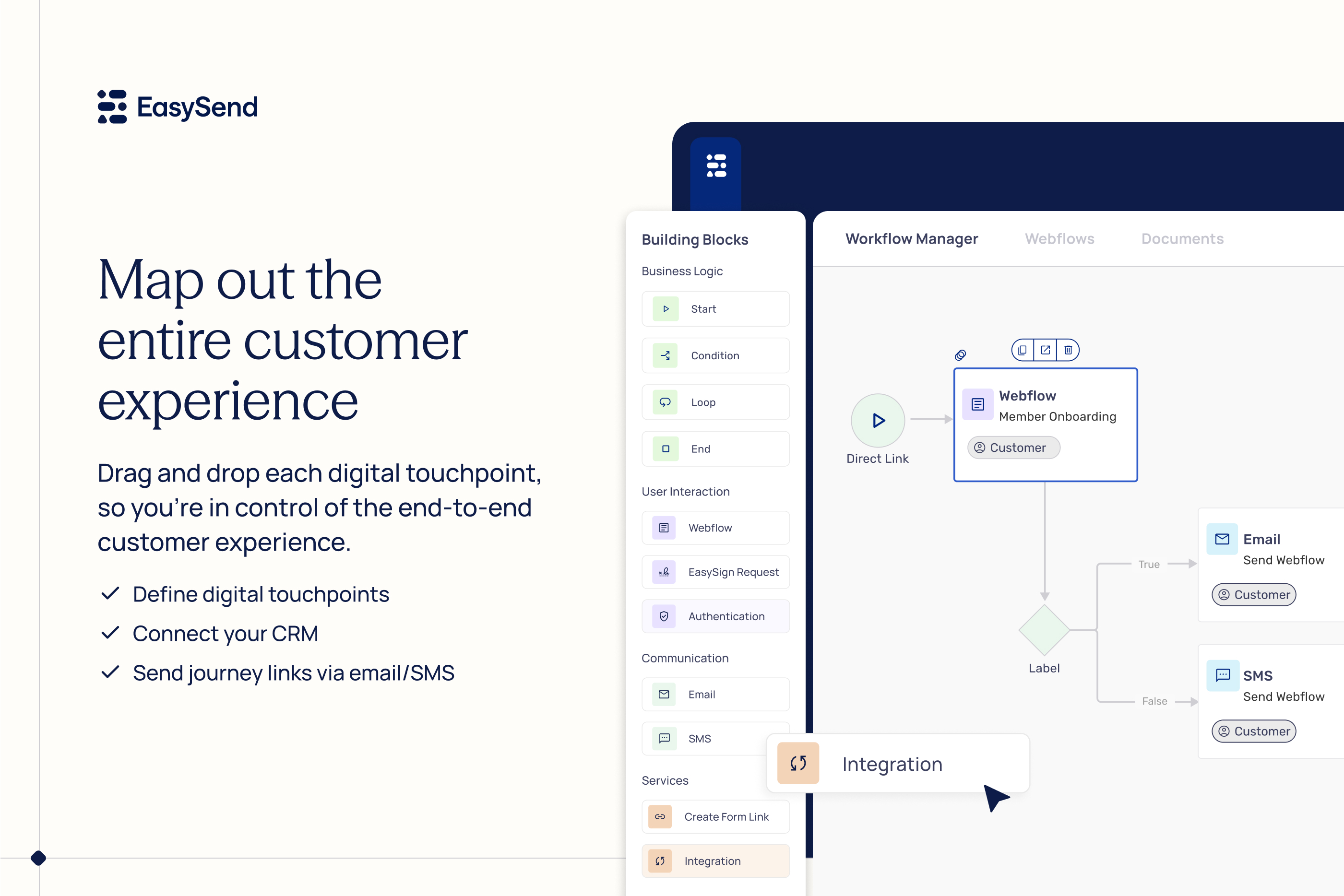 Financial ServicesCreate digital journeys with drag and drop and customize dynamic interactions with low code. Manage journeys, track progress and sync bi-directional data. Send via email or SMS and offer guidance with Co-Browsing. Try it for free!