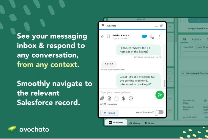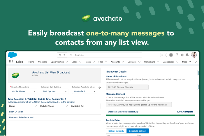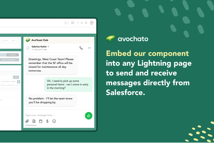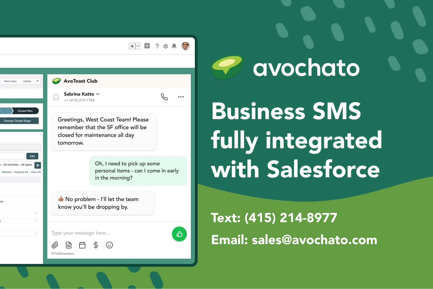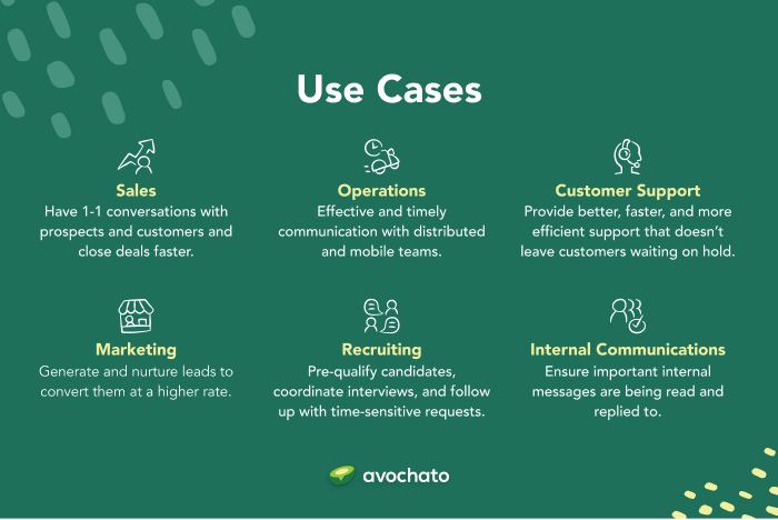 SalesAvochato makes it easy to generate and nurture leads and close more deals. SMS is the most effective channel to engage with customers - 98% of texts are read, and 69% of customers prefer receiving an SMS instead of a call. Start a free trial today.