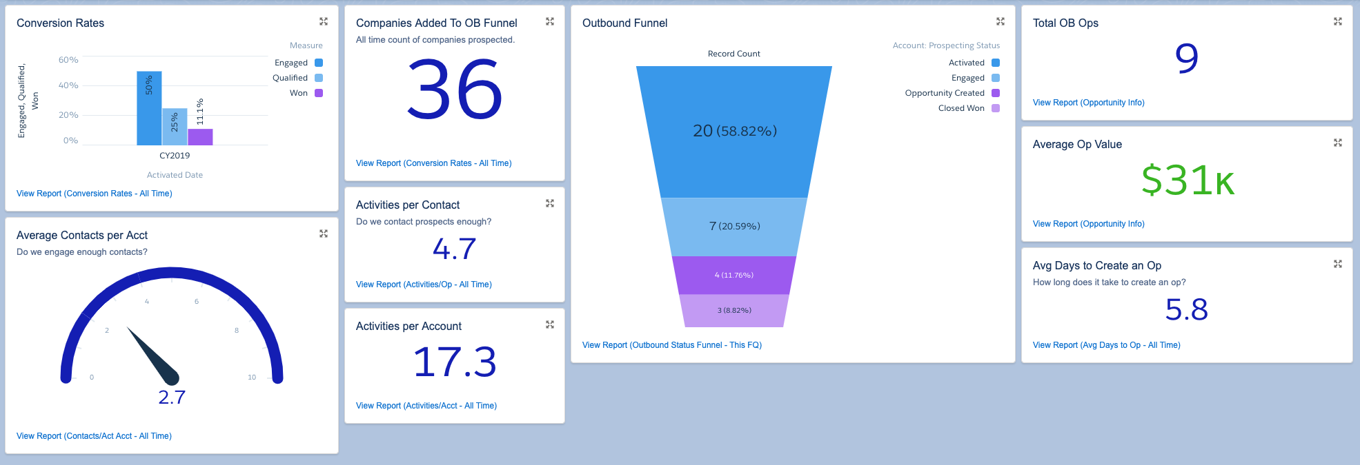 Sales IntelligenceSignal-based prospecting is all the rage, but tracking your sales team's prospecting efforts is impossible in Sales Cloud without InsideOutbound. Stop focusing on metrics that don't matter (activities) and focus on what does - your prospecting funnel!