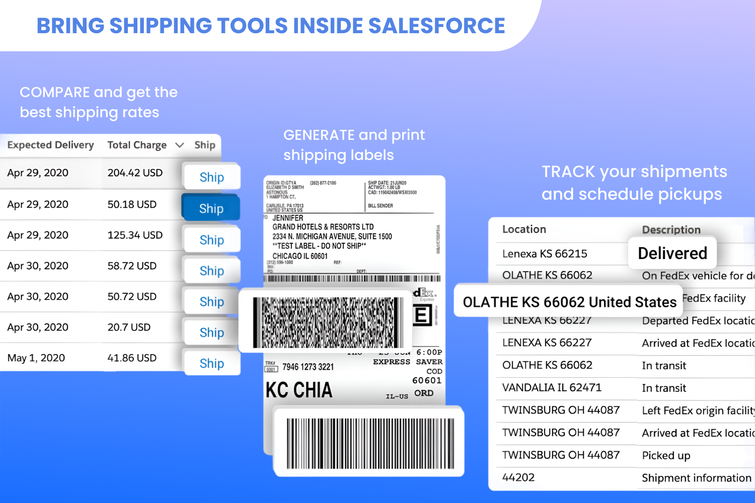 RetailOptimize your shipping process with our 100% native Salesforce Shipping App. Create labels, track shipments, compare rates, schedule pickups, and manage returns from one platform. Improve efficiency and customer satisfaction.