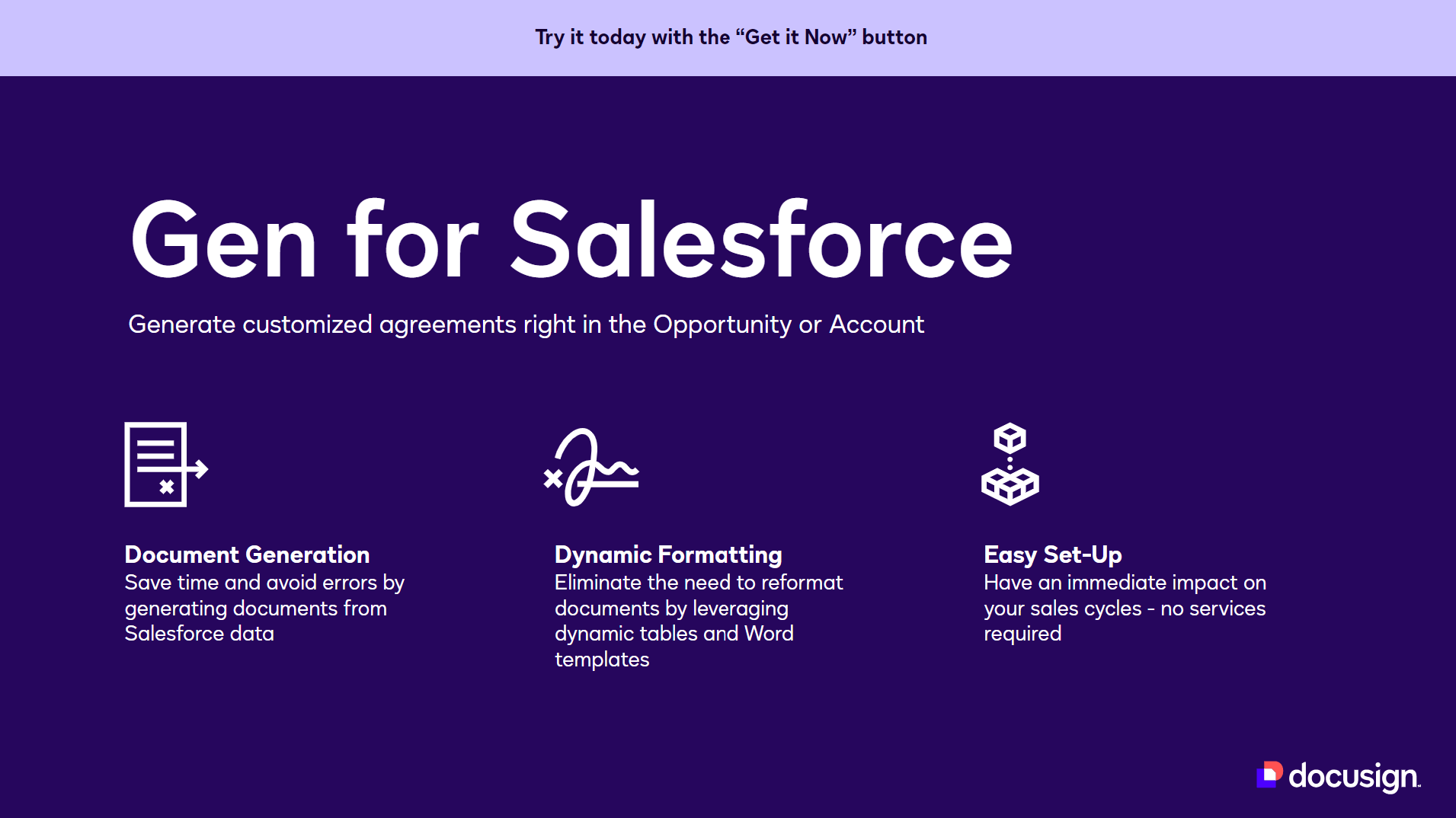 Document GenerationBuilt to be easy to use, Gen accelerates sales cycles by automating the generation of customized sales documents with just a few clicks from Salesforce.####**Try it free for 30 days!**