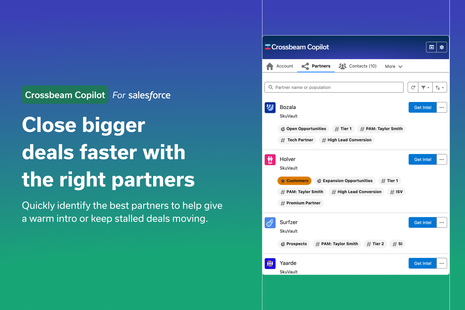 Partner ManagementCrossbeam puts your ecosystem data to work for you. With automated account mapping, immediately access the data, people, and companies in your network to help your GTM teams accelerate and close bigger deals.