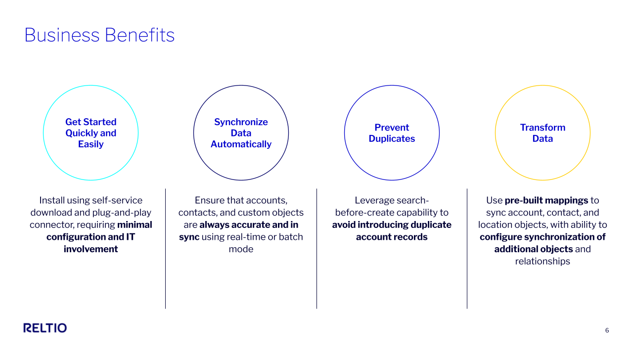 IntegrationReltio unifies and cleanses multi-source, complex data into a single source of trusted information. You get insight-ready, real-time data that you can act upon with full compliance, security, and confidence.