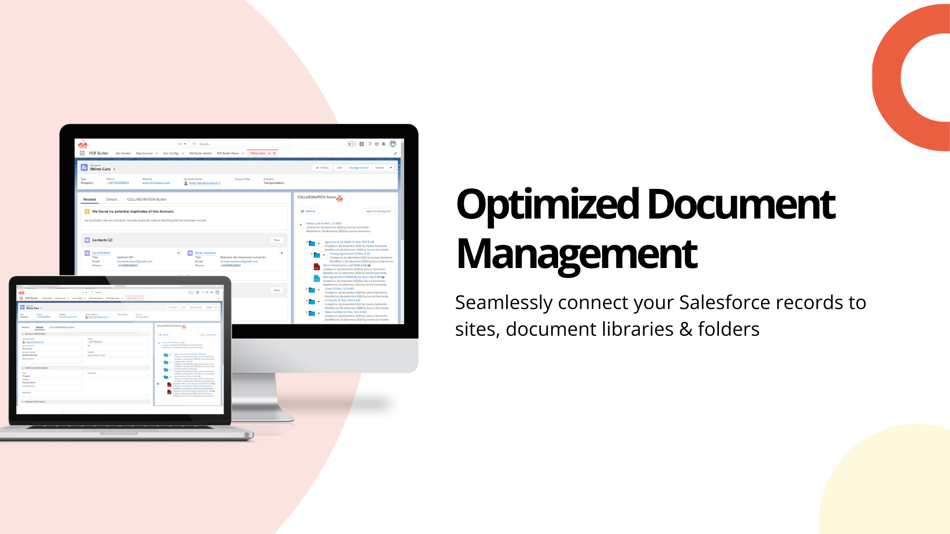 Document ManagementLightning Components that provides a 360° view on SharePoint Document Libraries and Google Drive files in relation with the Salesforce Record. All of this in the Salesforce and SharePoint (or Google security) context of the user.