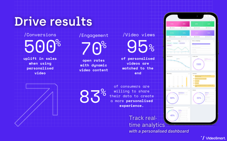 Campaign ManagementCombine data and video to serve 1-2-1 personalised experiences at key customer touchpoints. Add interactive CTA buttons to drive conversion rates. Track the performance of your video with a personalised dashboard providing real-time analytics.