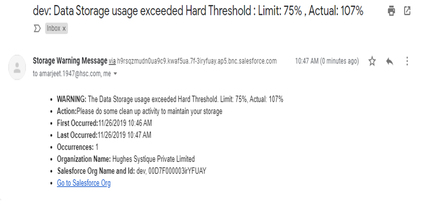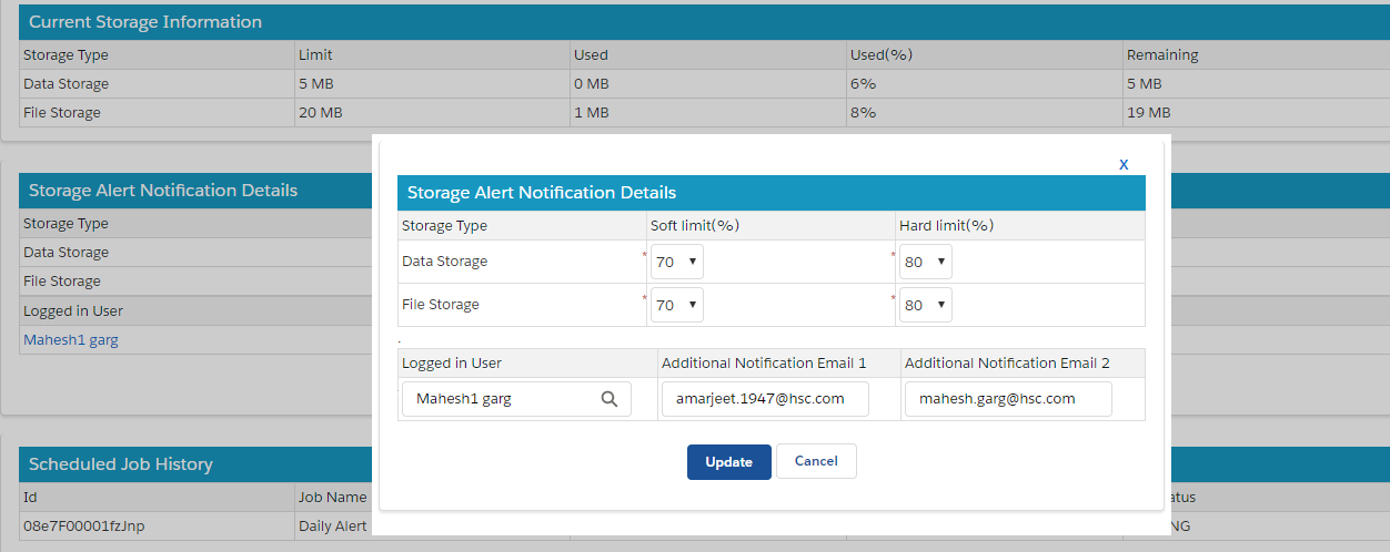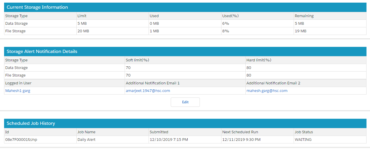 Admin & Developer ToolsSends daily email notification to specified users If Salesforce storage limit of Data / File exceeds from user defined Soft / Hard limits.