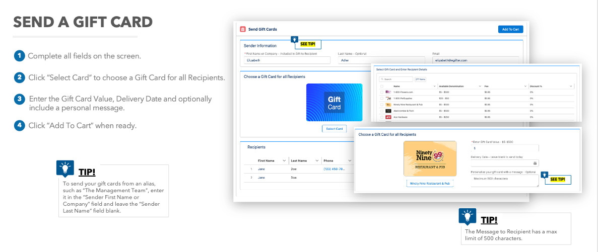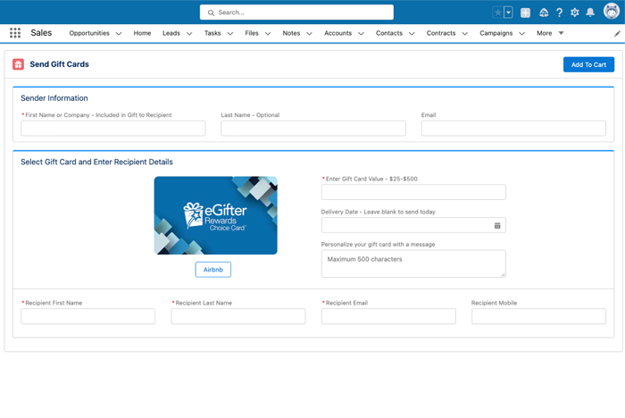 eGifter Rewards™ is a rewards and incentives platform seamlessly integrated with Salesforce, making it possible to send digital gift cards to individuals or multiple Recipients directly from your Salesforce sales or service cloud.