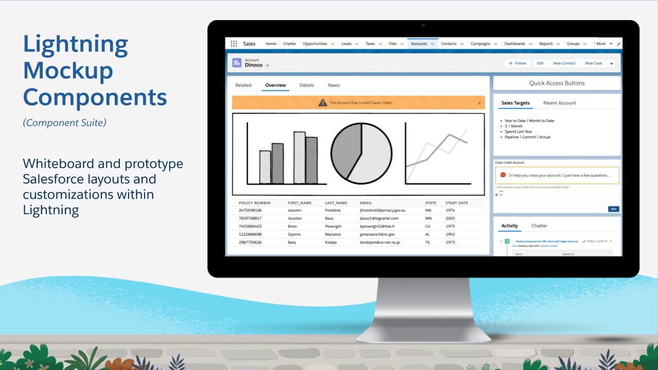 This is a suite of components##that help you create 'Digital Paper Prototypes' to help you and your customers quickly envision what the Lightning Experience could be for them.