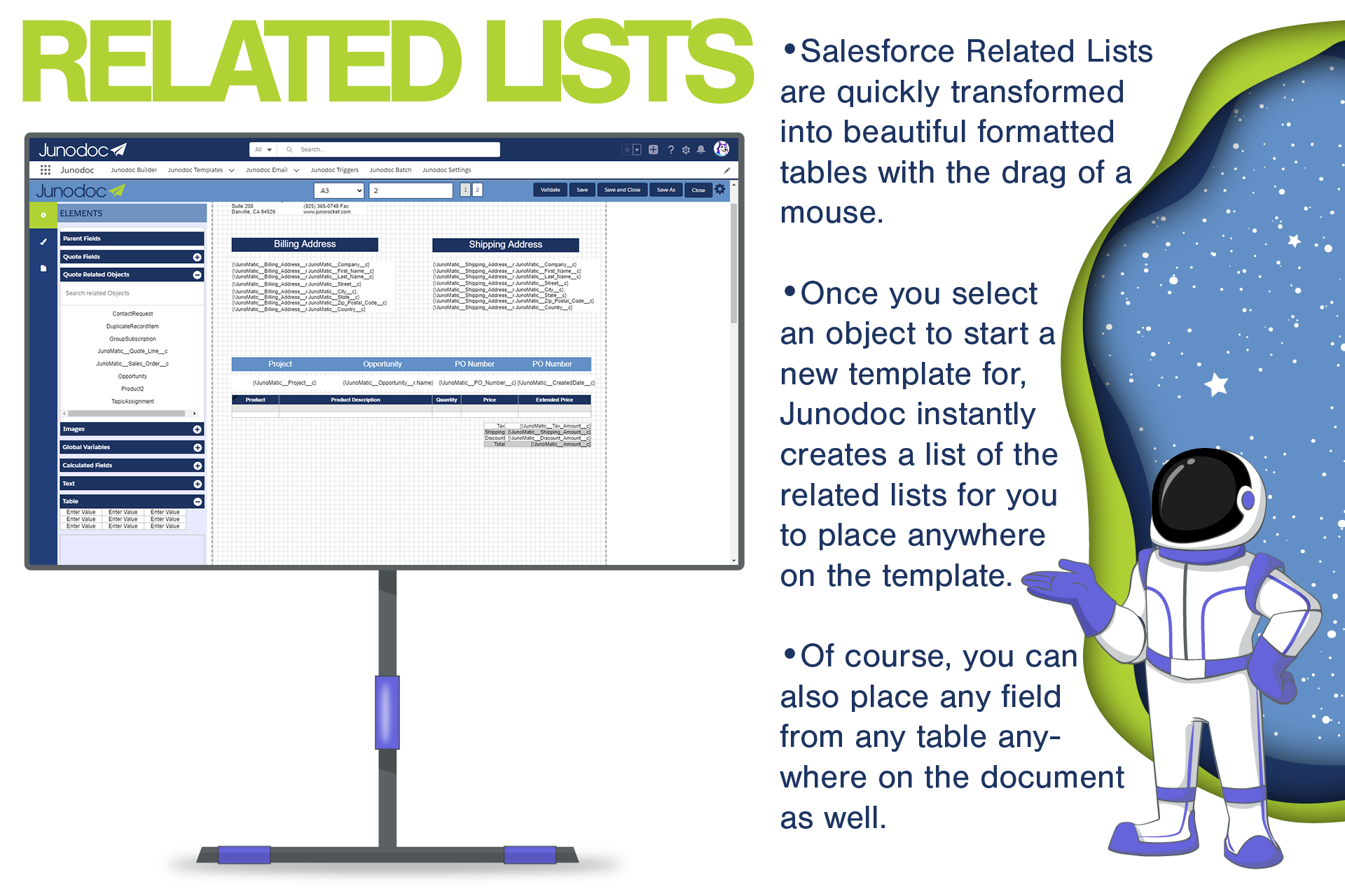 Document GenerationSalesforce document generation made easy. Add your logo, select fields, build tables and share within minutes. Email templates enhance your ability to quickly send out Quotes ##Invoices & Reports with little effort. Automate with business logic.