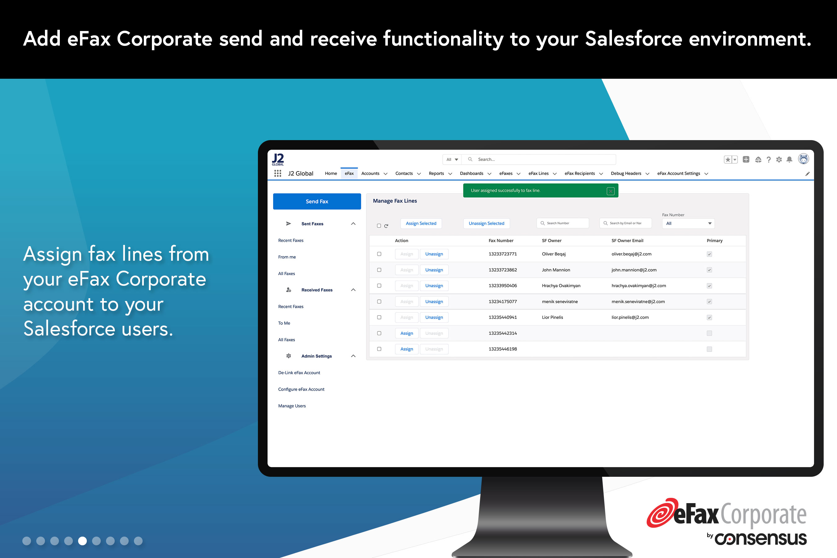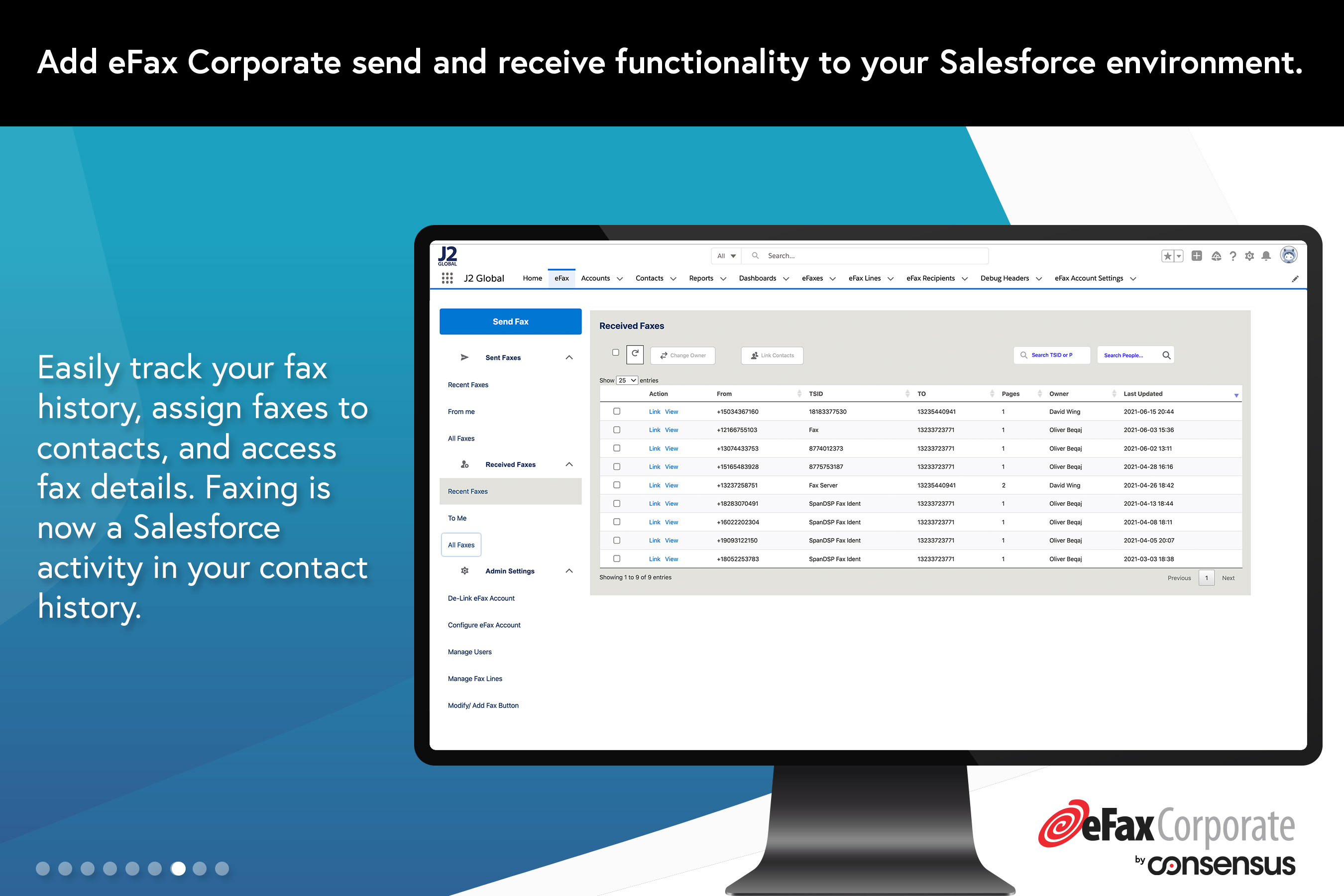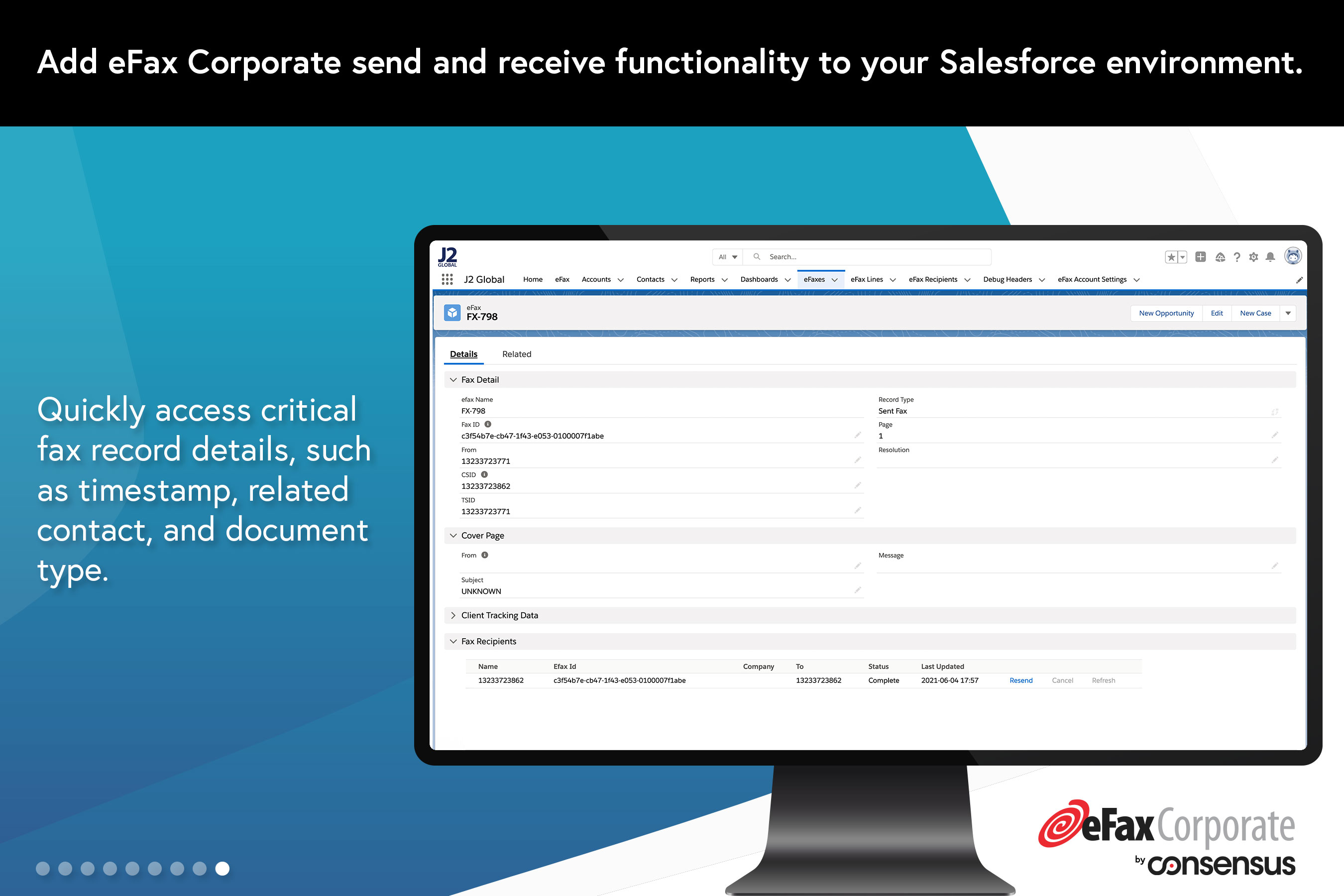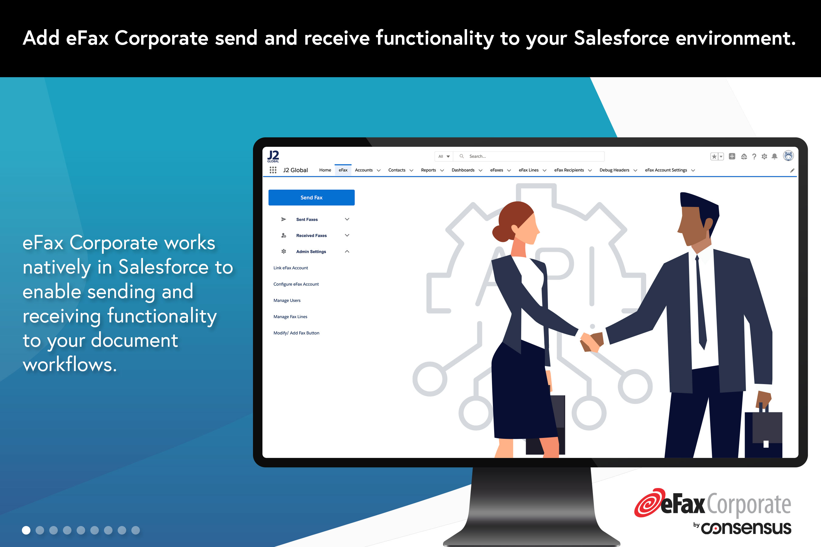 ProductivityThe Salesforce eFax Connector brings eFax capabilities to Salesforce users who can now easily integrate fax activities with other workflow processes.