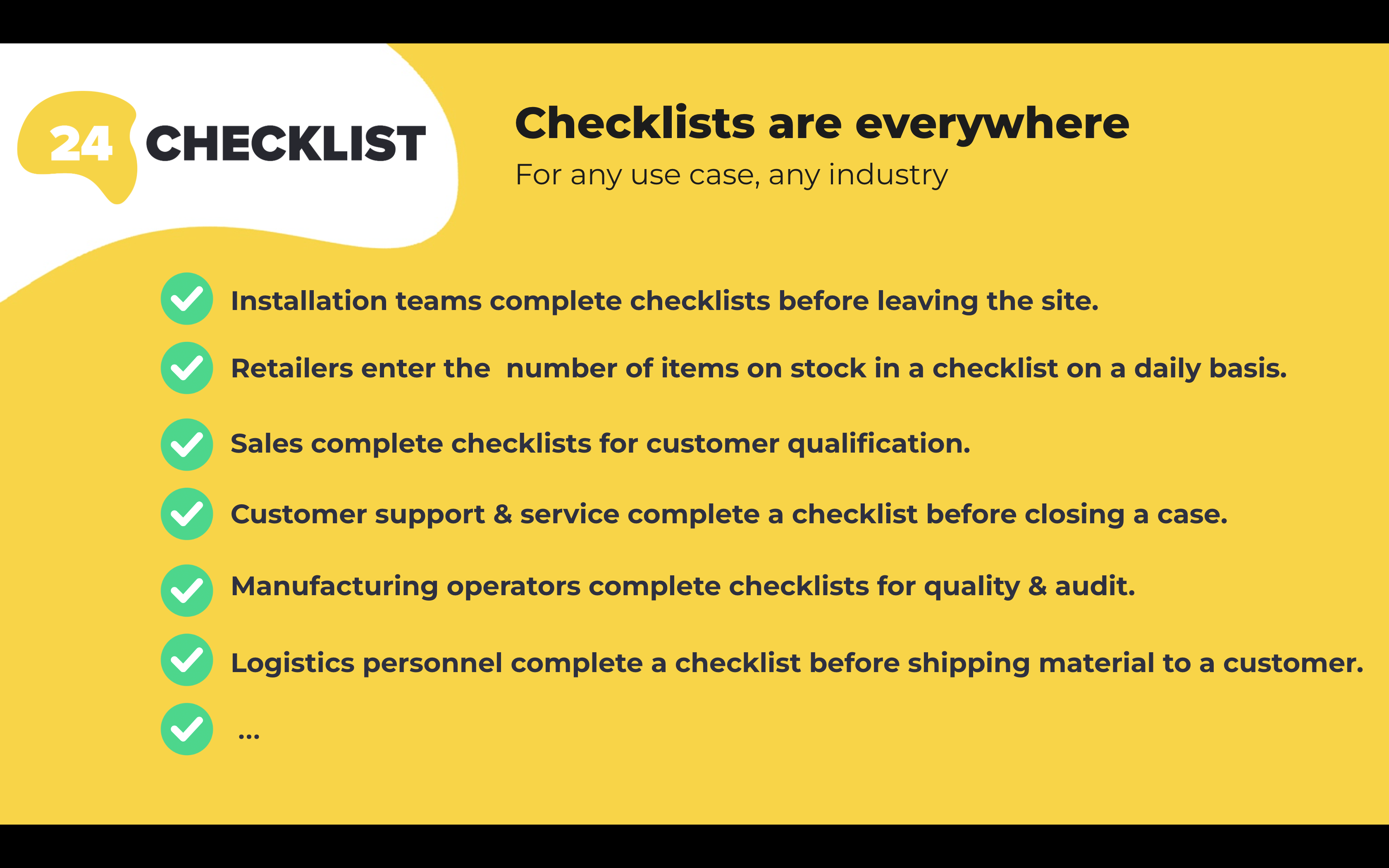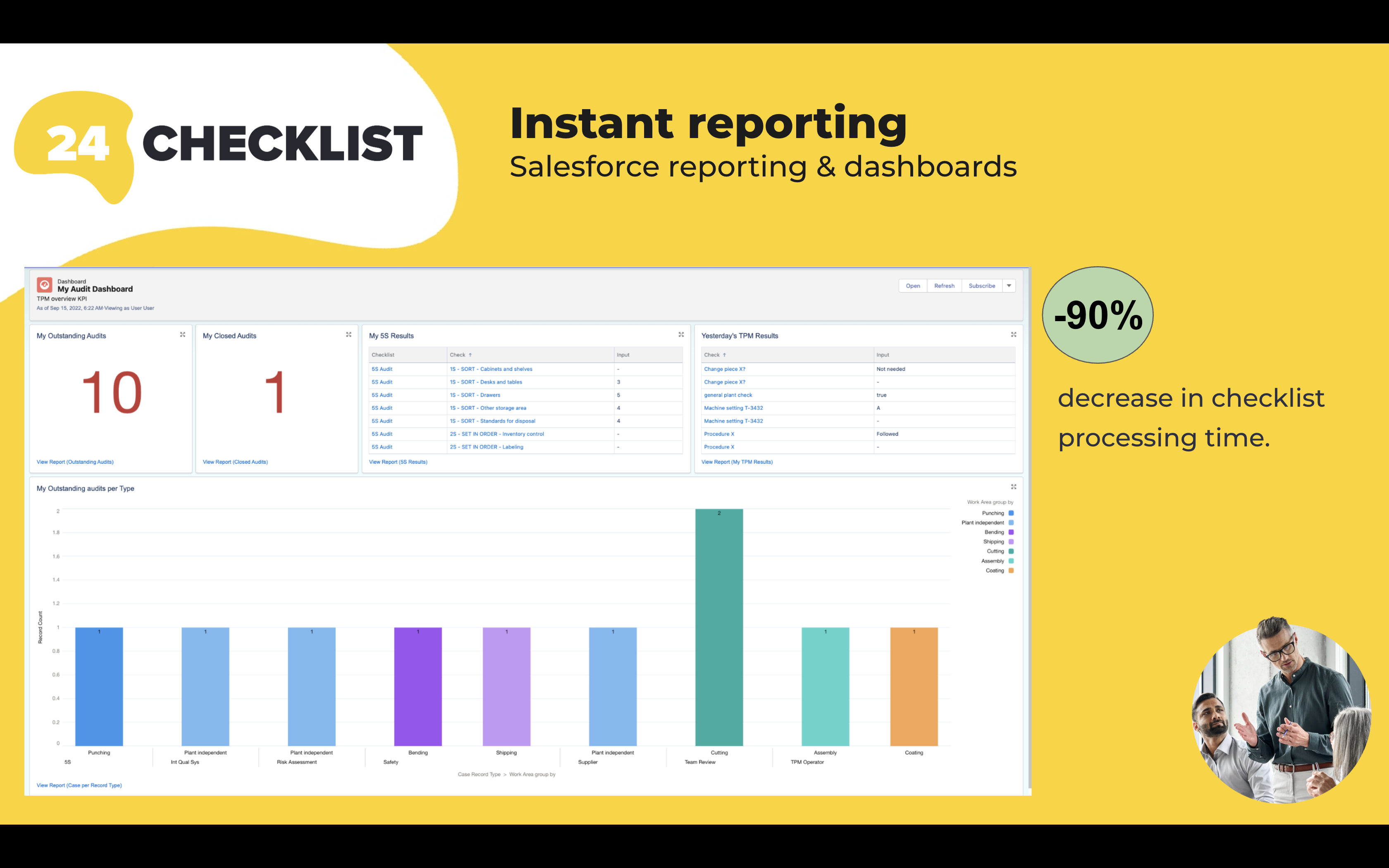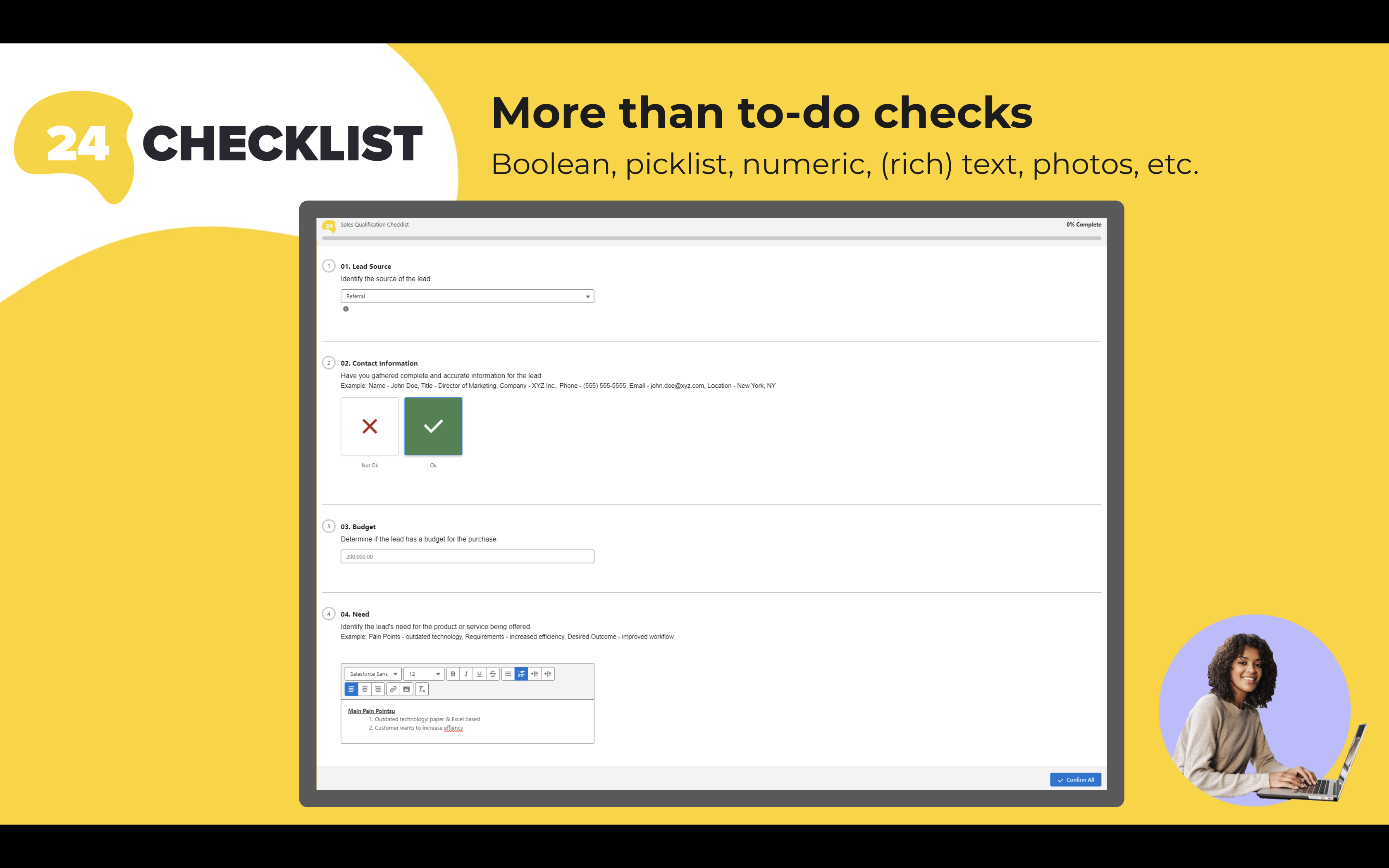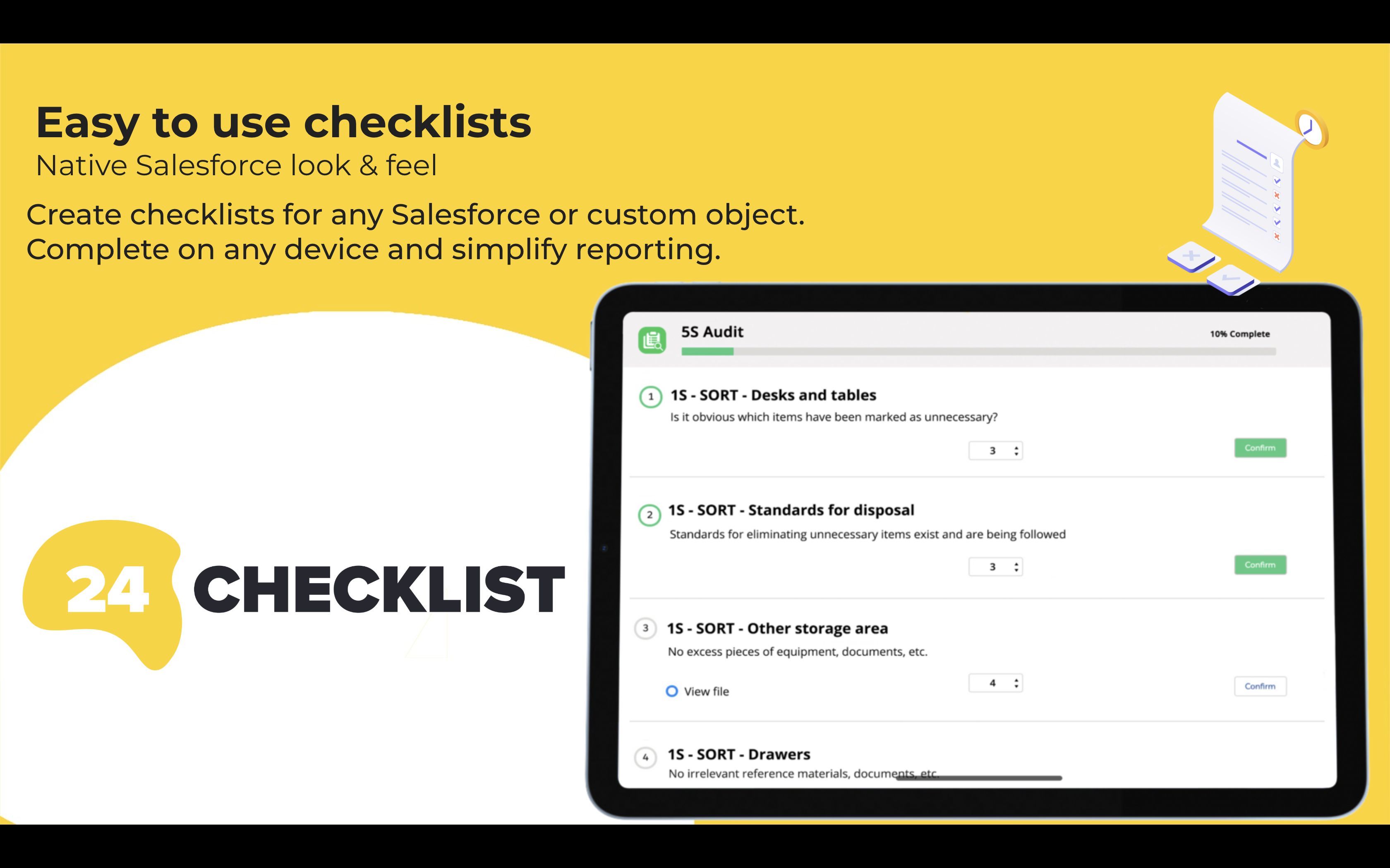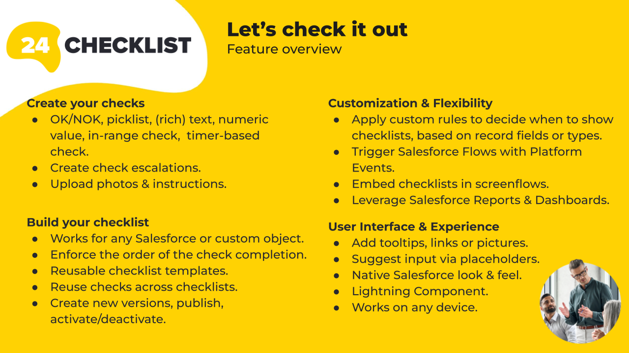 Checklists and To-Do Lists for any Salesforce object. Standardize tasks, ensure compliance & manage inspections. Mobile ready, no-code setup, real-time alerts and native reporting for any Salesforce object.####Try now with a 14 days free trial!