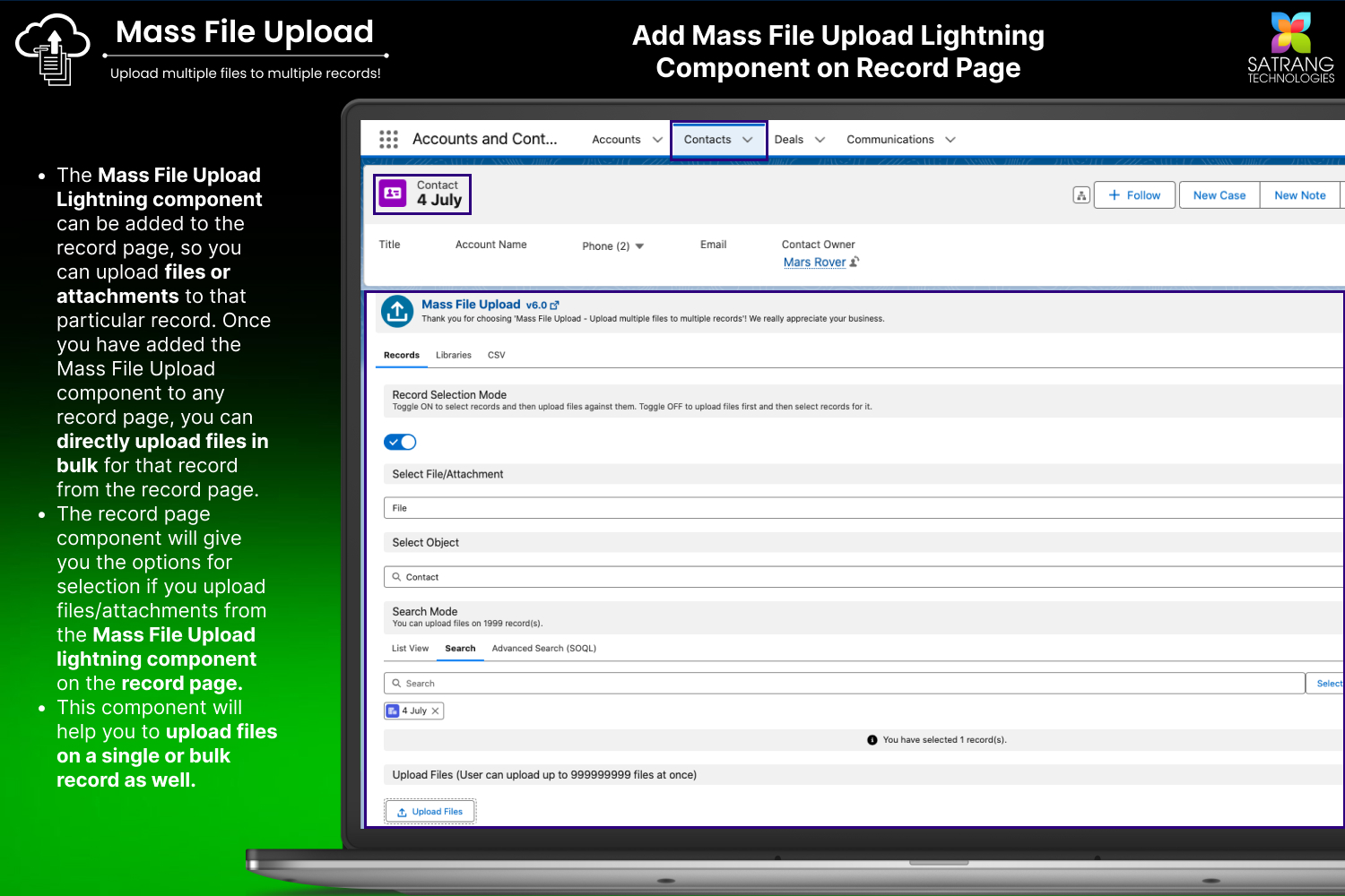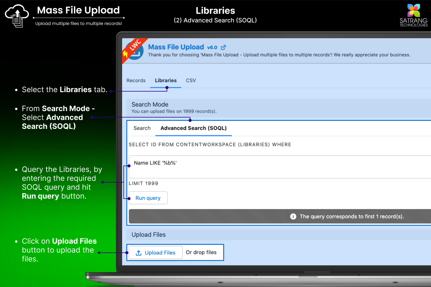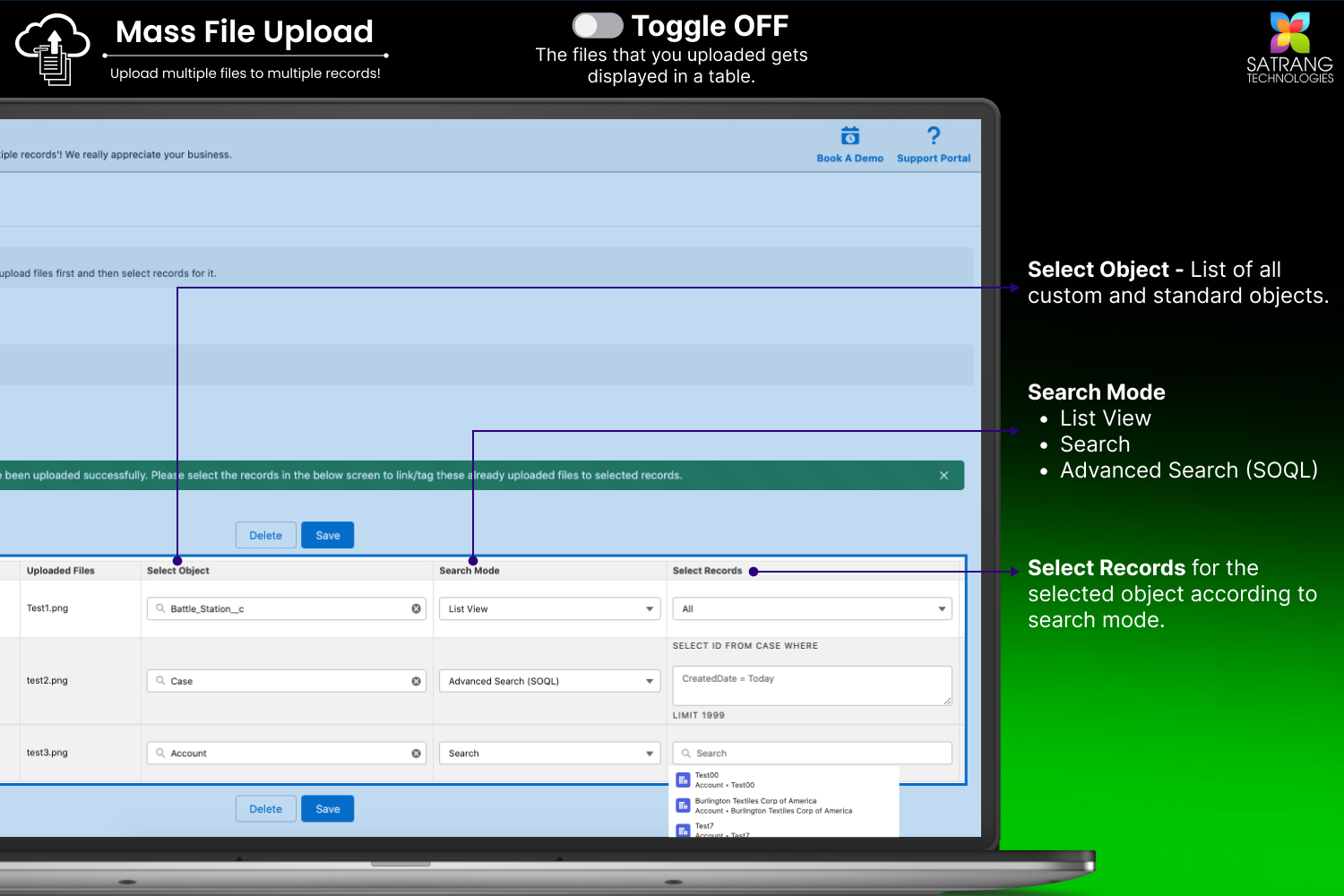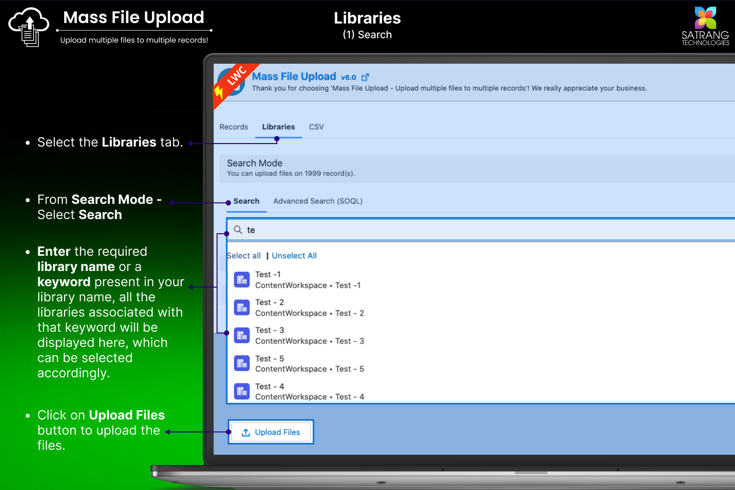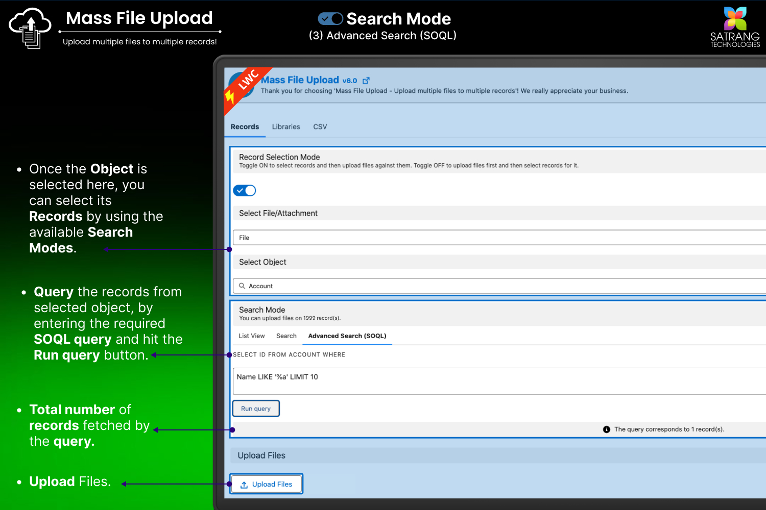 Mass upload Salesforce files & attachments to multiple records or libraries####Upload files via List View, Search, or Advanced SOQL####Supports standard & custom objects####Secure, native Salesforce transfers, fast, bulk, & compliant####Free trial available