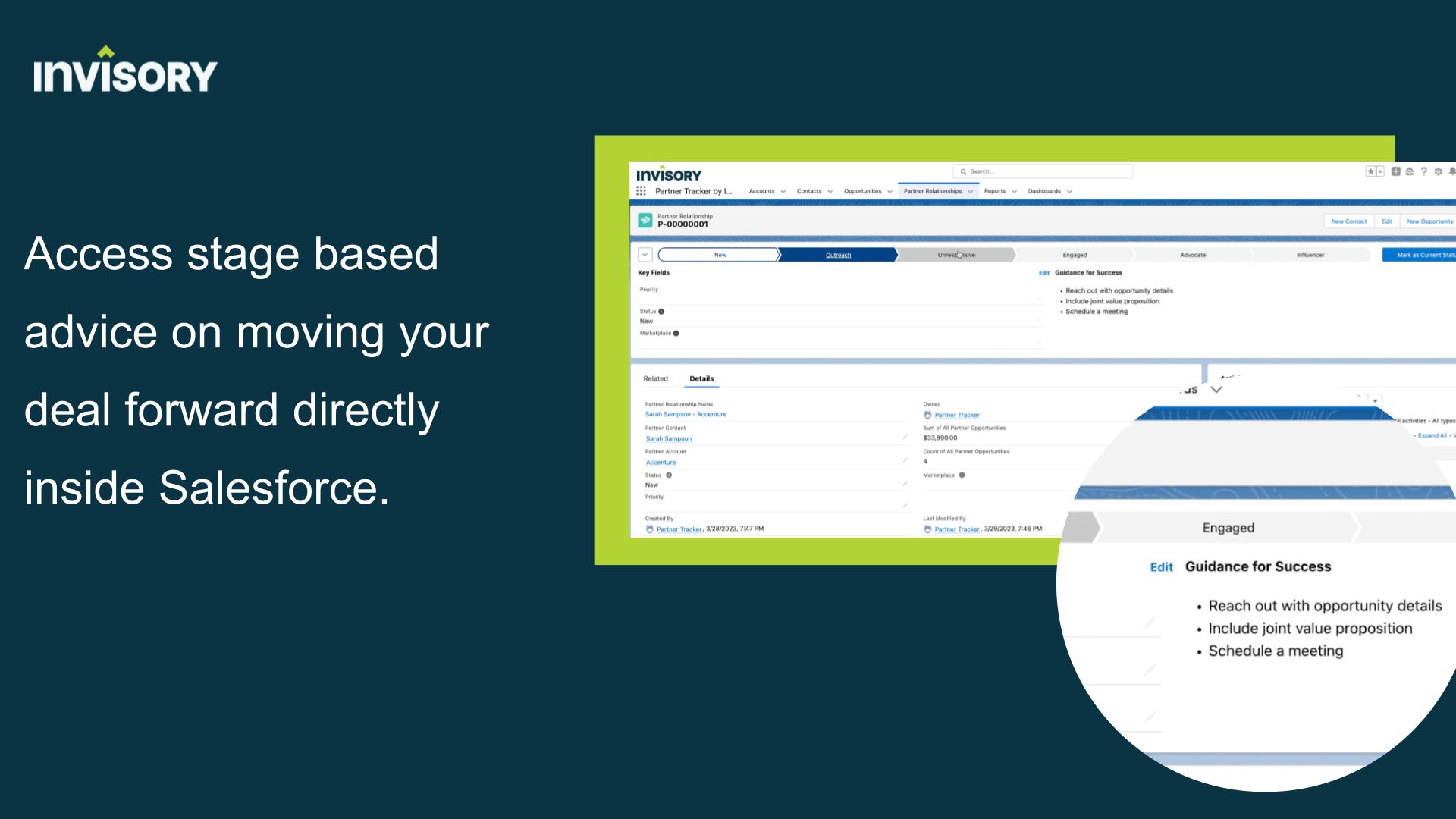 Uncover partner performance insights at the individual & partner account level inside Salesforce. Easily identify co-sell opportunities & gaps for next best actions with an SI or ecosystem AE by leveraging opportunity level tracking and executive reports.