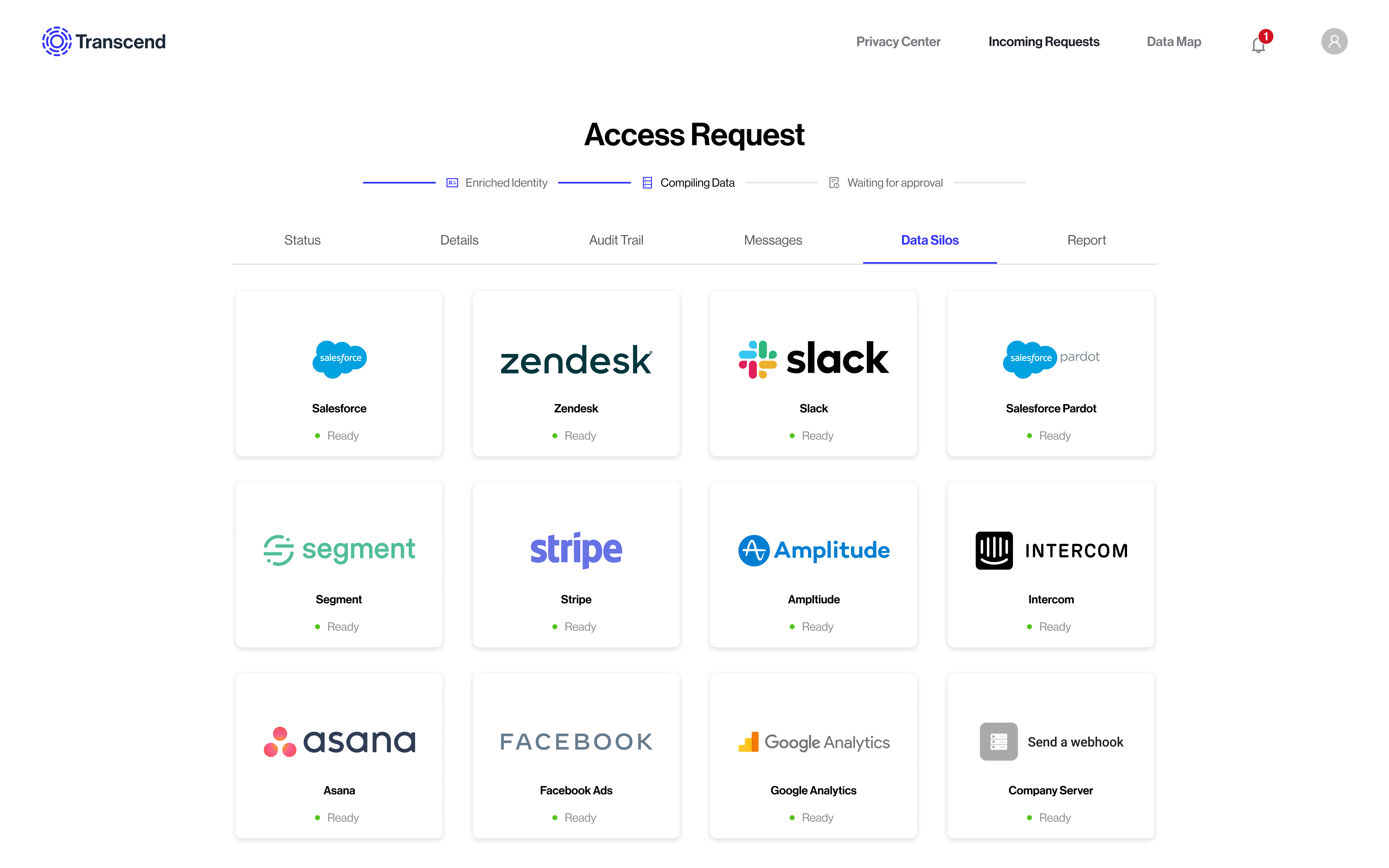 IT & AdministrationTranscend automates privacy requests by orchestrating data across dozens of data systems, including Salesforce. Ultimately, this helps teams comply with regulations like GDPR and CCPA and puts individuals in the driver's seat when it comes to their data.