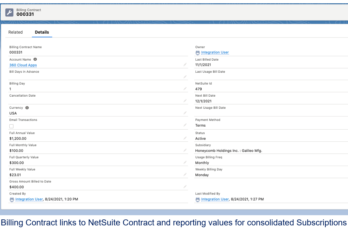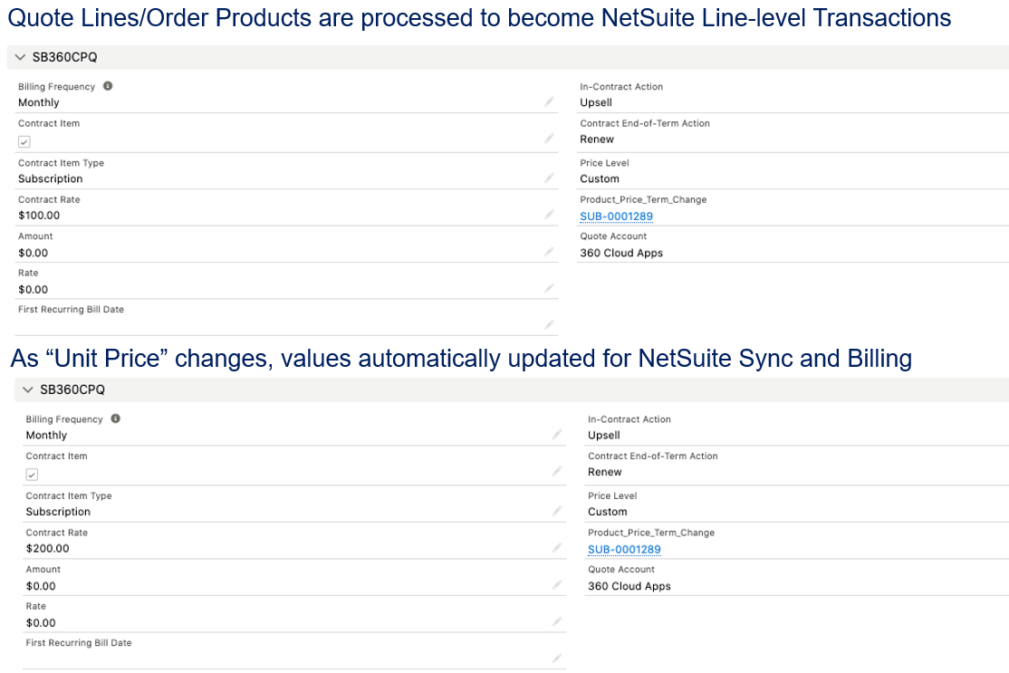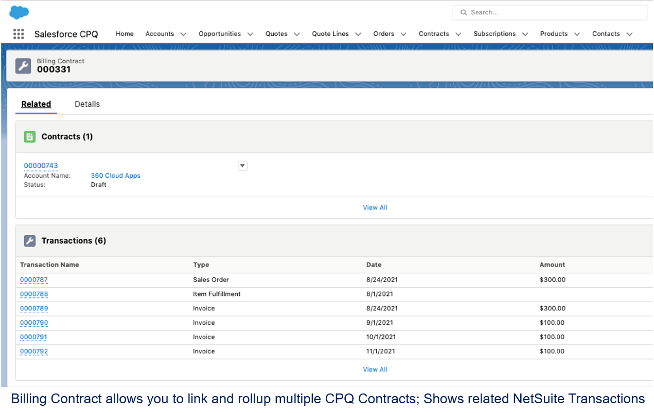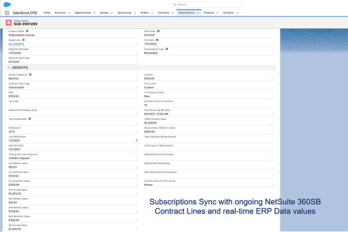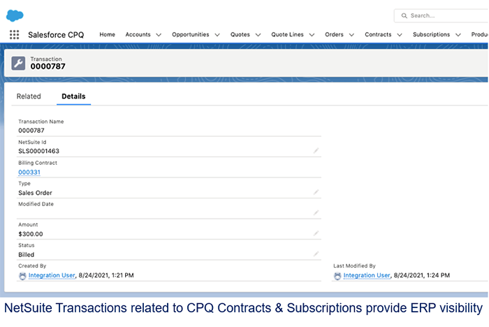 IntegrationCPQ NetSuite Connector, Subscription Billing Contract, Recurring Billing, Account Sync, Recurring Revenue Metrics, Line Level Processing, Revenue Cloud