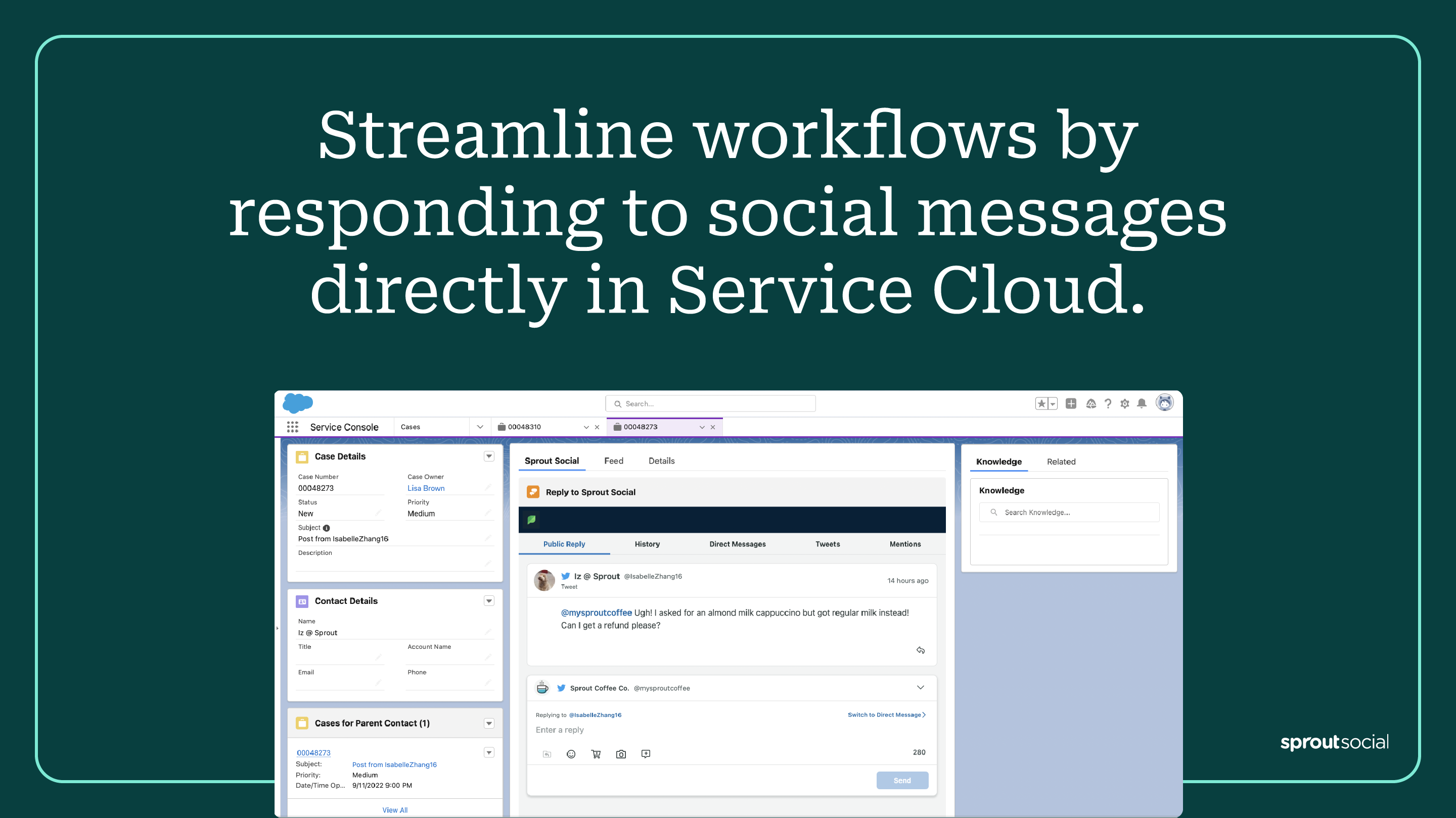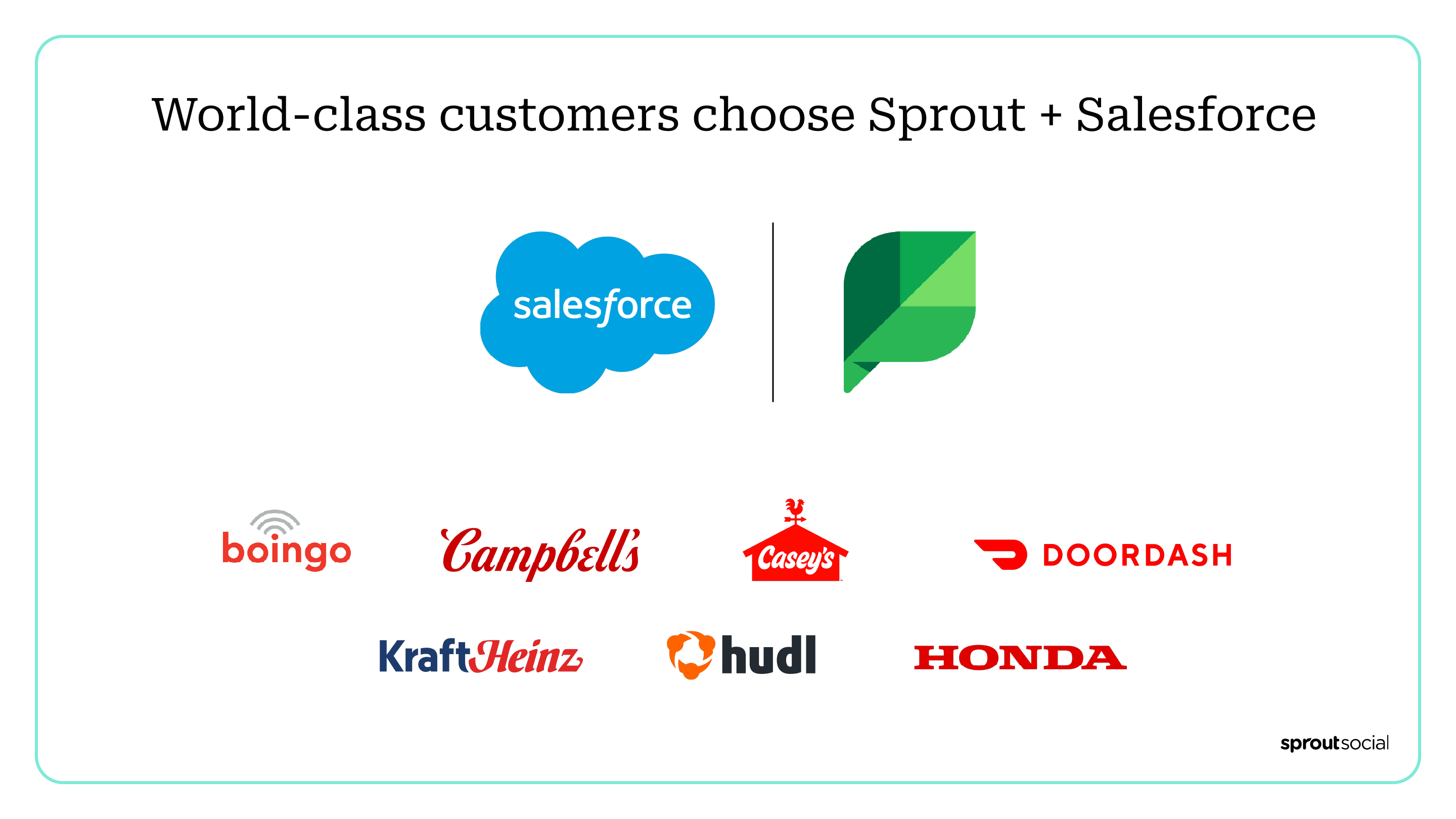 Deliver world-class social customer care with Sprout Social and Salesforce Service Cloud. Our customers drive revenue, grow and retain a loyal customer base, and strengthen brand equity by enriching their CRM with social data.