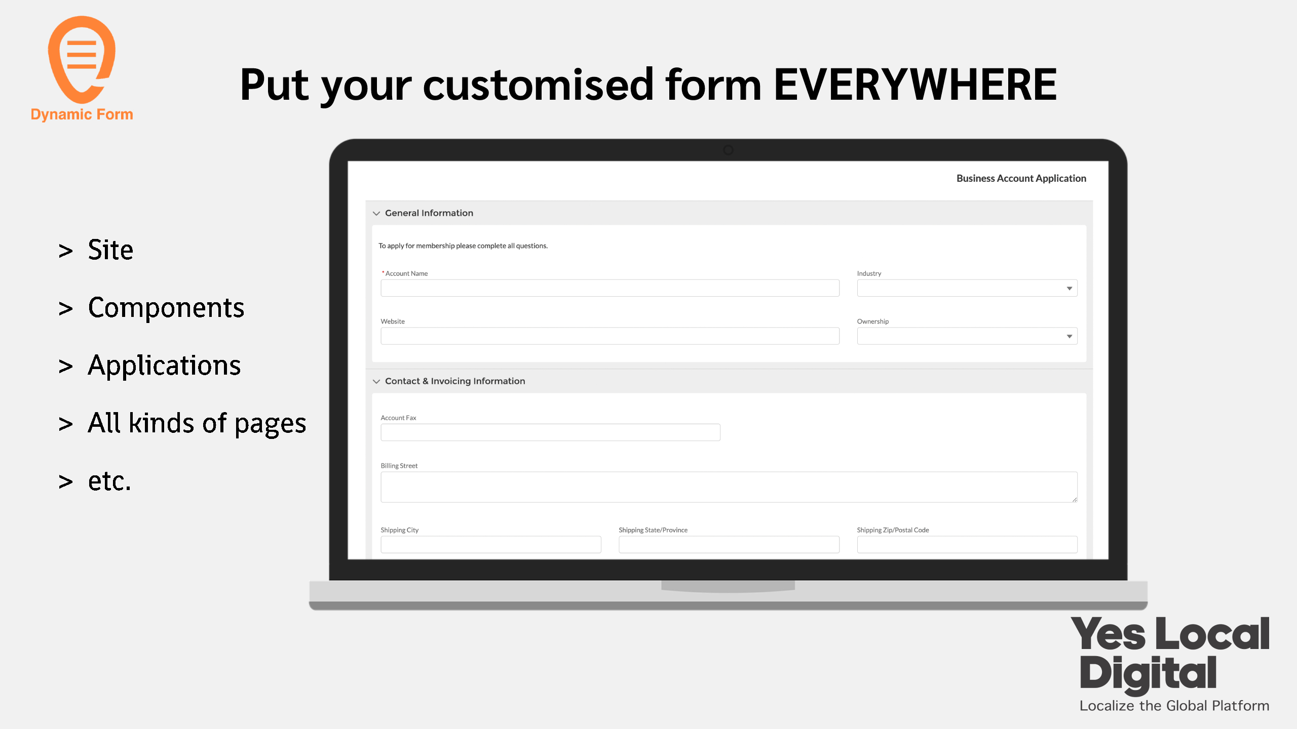 Dynamic Form enables business users to create appealing forms via drag & drop! These forms can then be added to Salesforce Experience Cloud, Customer/Partner Portal, etc to capture the data from internal/external people. Please follow installation guide.