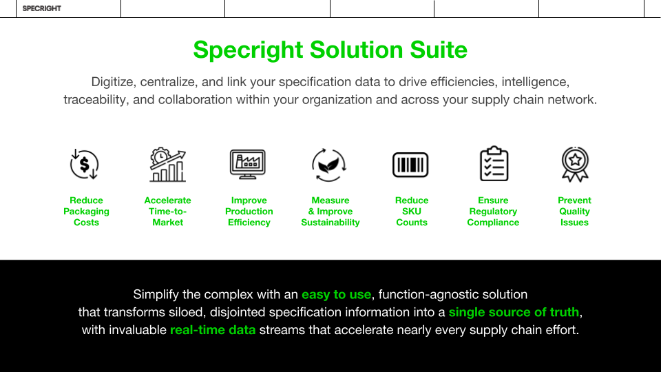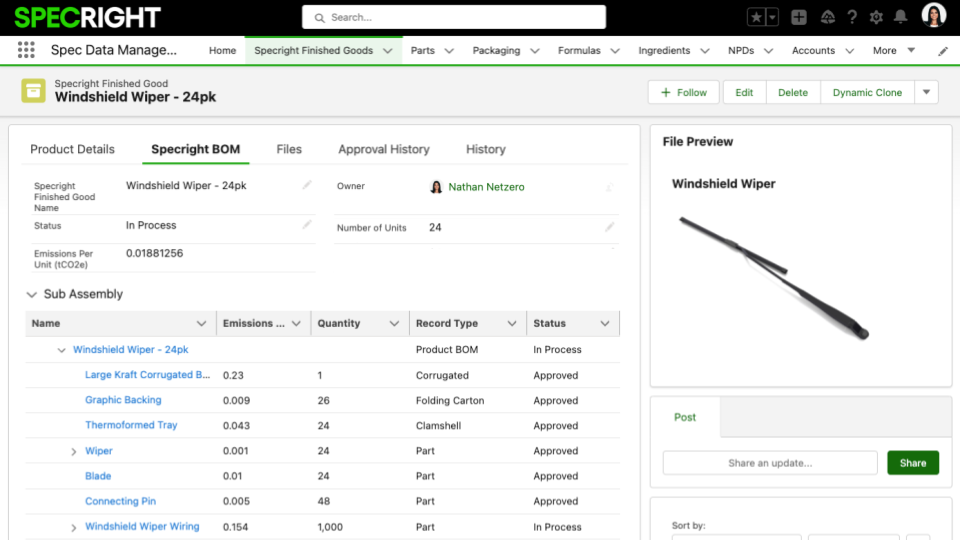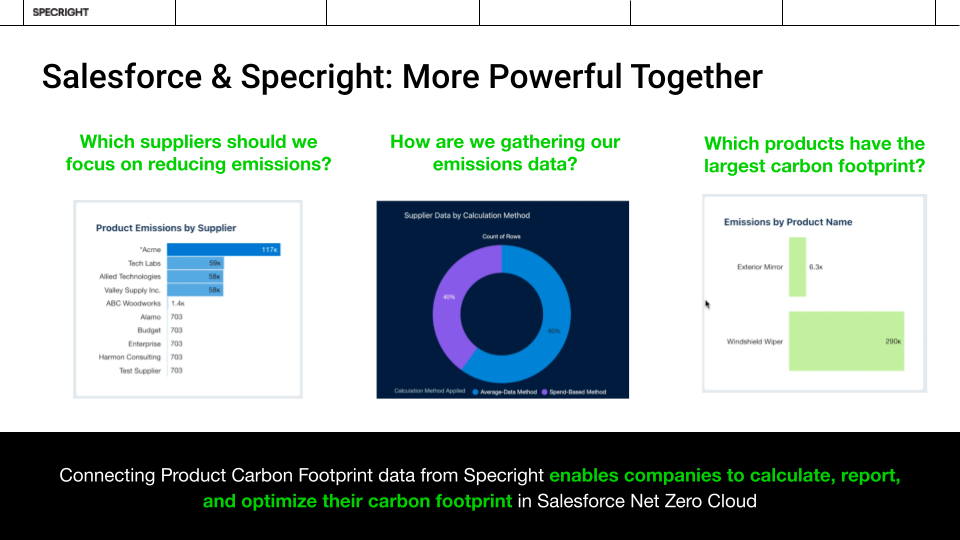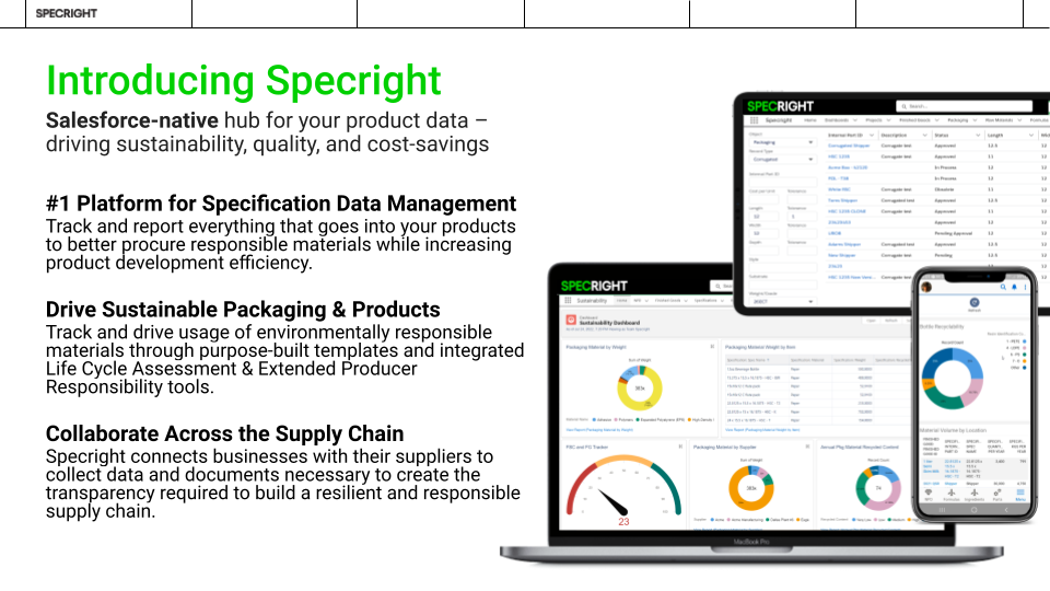 This Specright extension package connects to the Net Zero Cloud data model to harness the power of product data, LCA tools, and supplier networks in bringing Scope 3 product level emission reduction and impact tracking within reach.