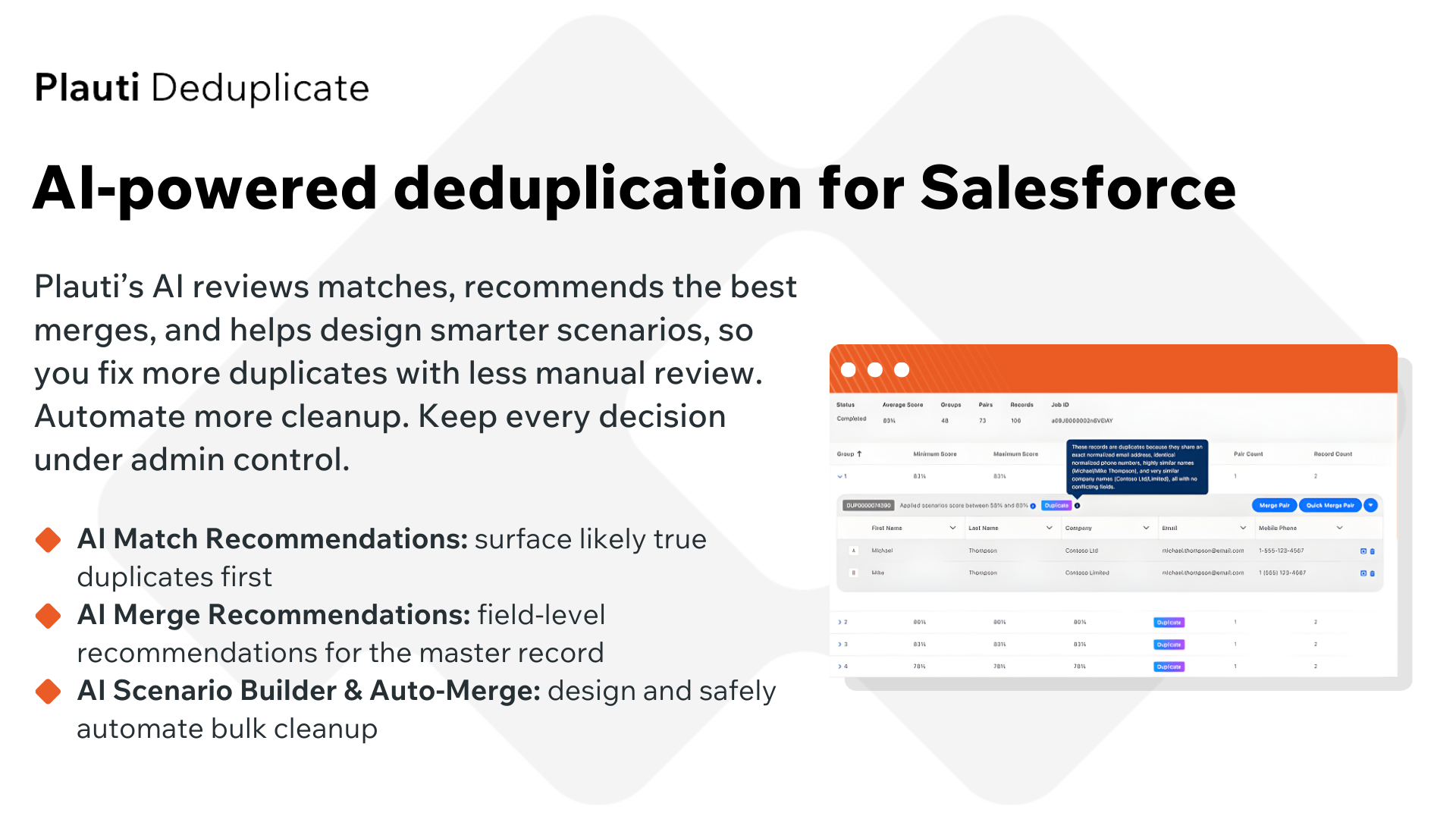 Free Try all features free for 14 days! Every business is unique: data, process, budget, and tech. That’s why Plauti offers customized pricing tailored to your needs. Get your custom pricing: www.plauti.com/pricing-built-for-your-business