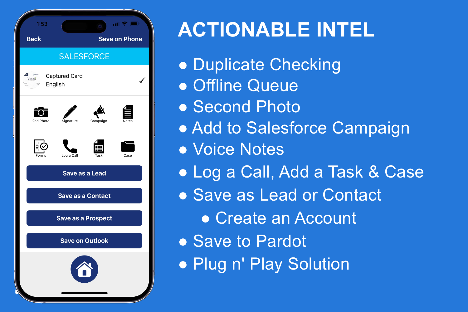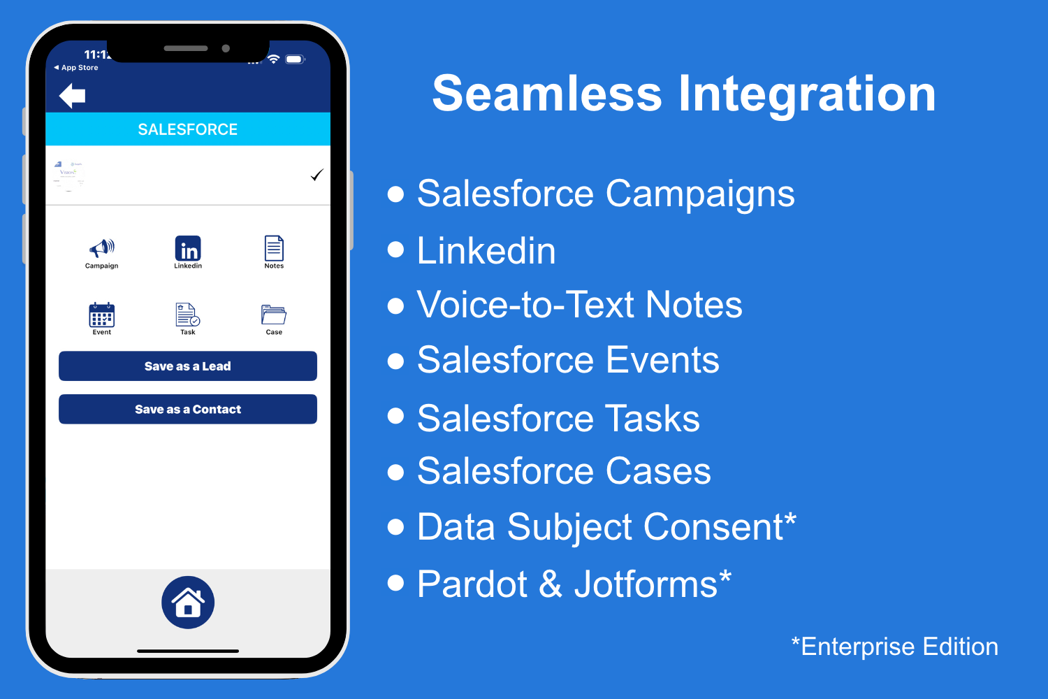 ProductivityApple & Android mobile scanner to instantly send unlimited business cards and trade show badge images to Salesforce. It's is more than just a scanning tool—it’s your 24/7 networking solution. Scan leads/contacts with in-app or Enterprise site license.
