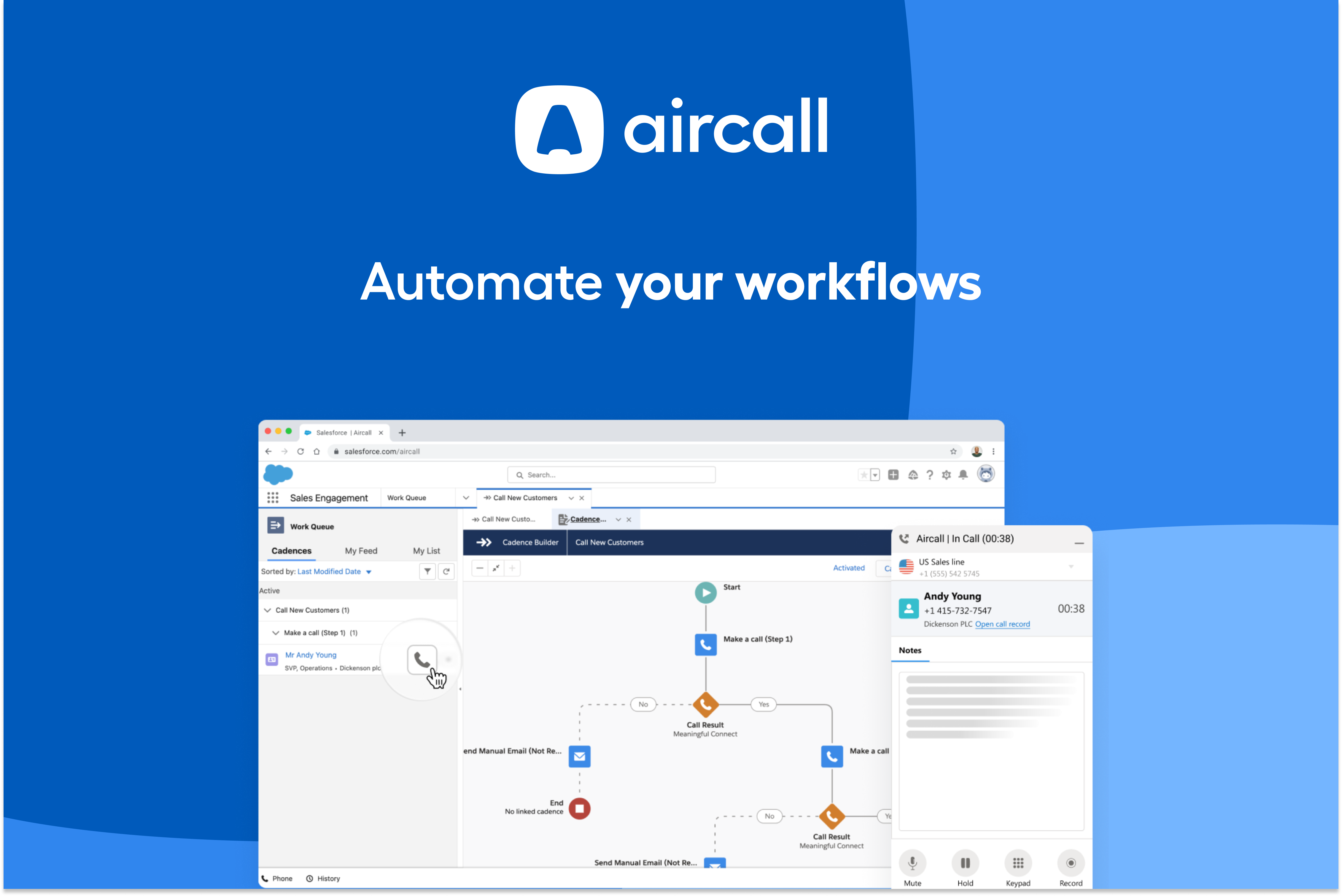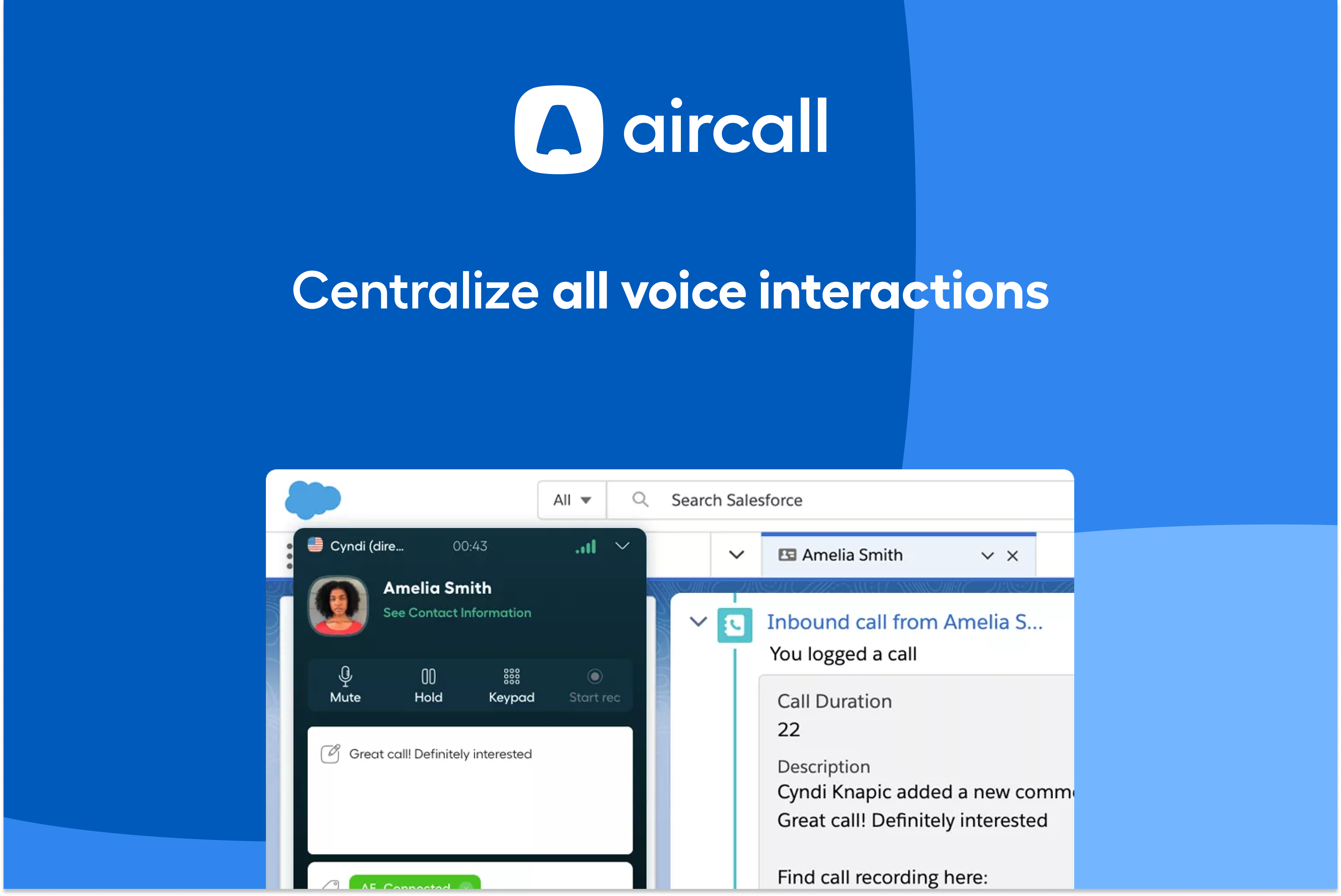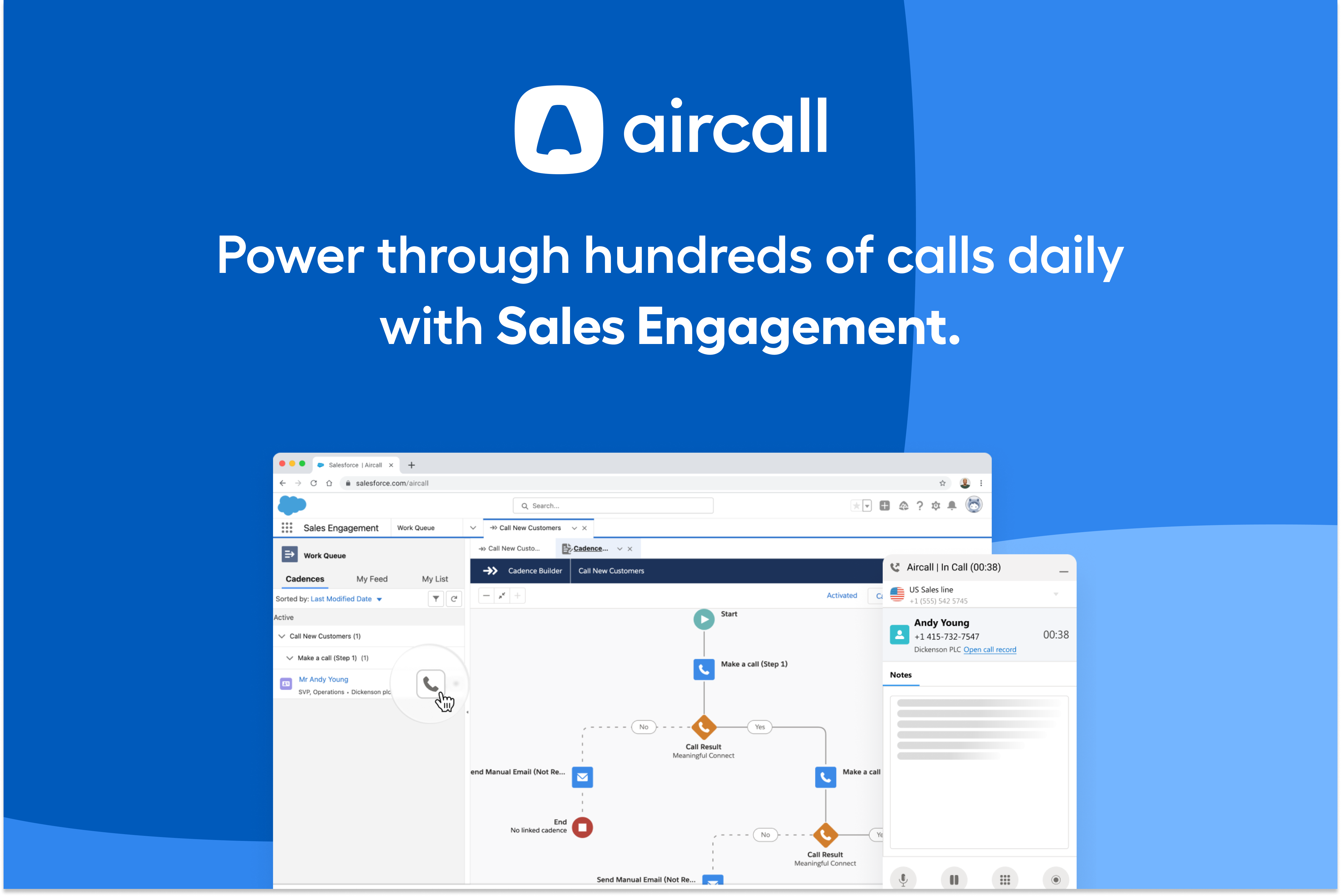 TelephonyAll your customer and prospect communications—calls, SMS, and WhatsApp—plus data are fully integrated with Salesforce through Aircall CTI. Join 1,800+ customers using click-to-dial, call logging, analytics, AI call summaries, and Sales Engagement (HVS) to