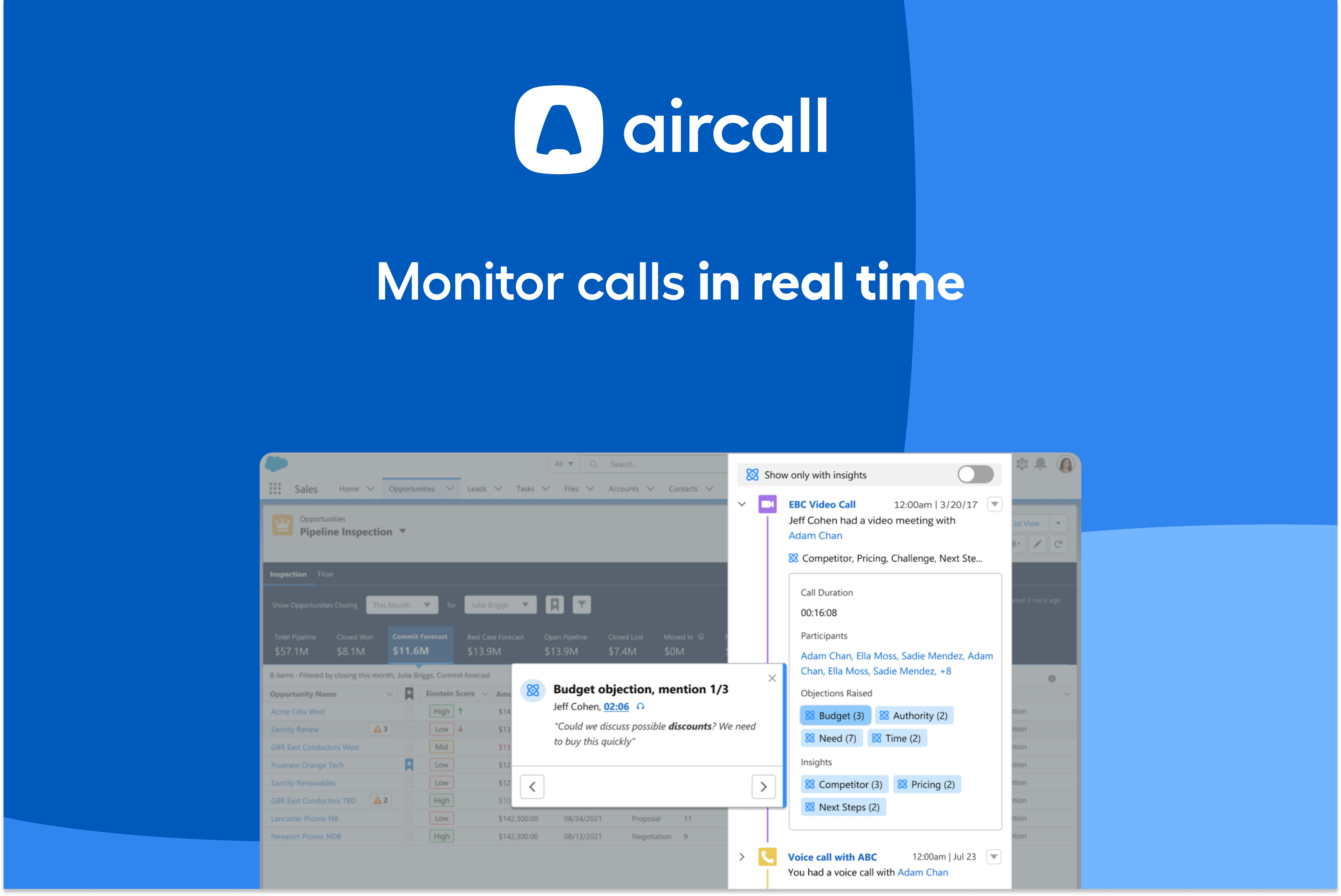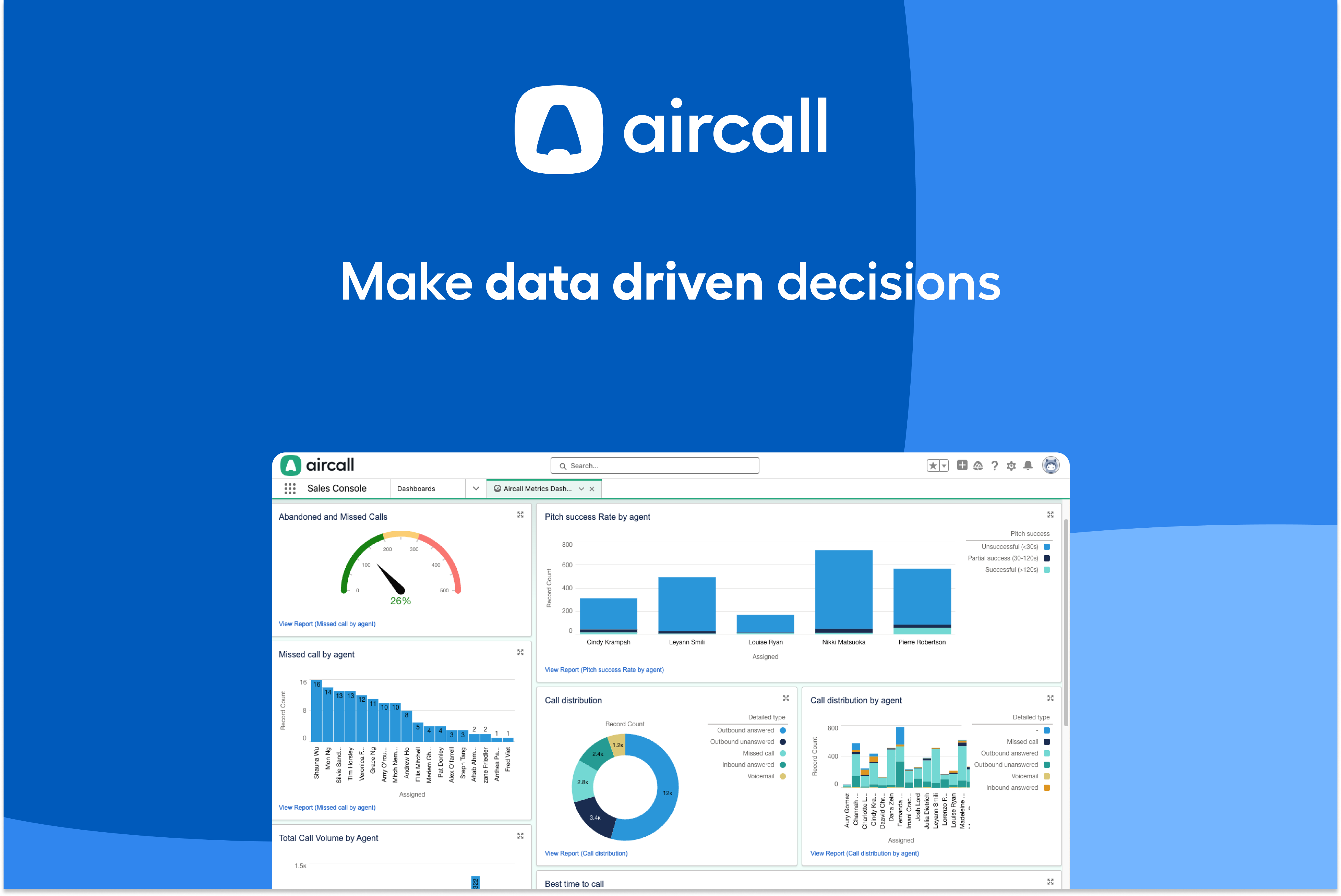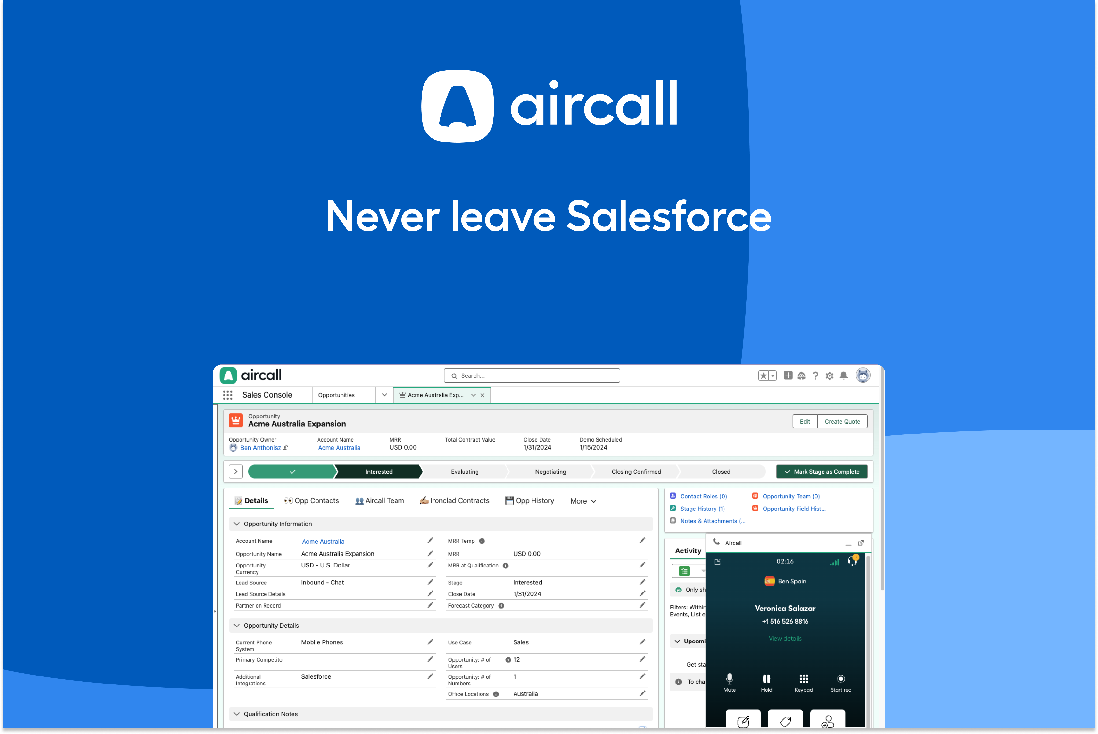 TelephonyAll your customer and prospect communications—calls, SMS, and WhatsApp—plus data are fully integrated with Salesforce through Aircall CTI. Join 1,800+ customers using click-to-dial, call logging, analytics, AI call summaries, and Sales Engagement (HVS) to