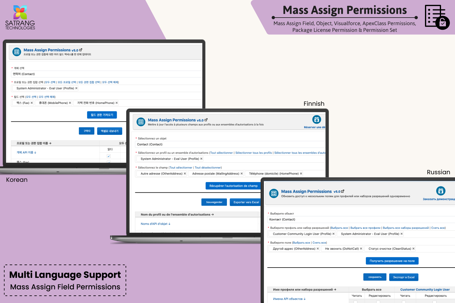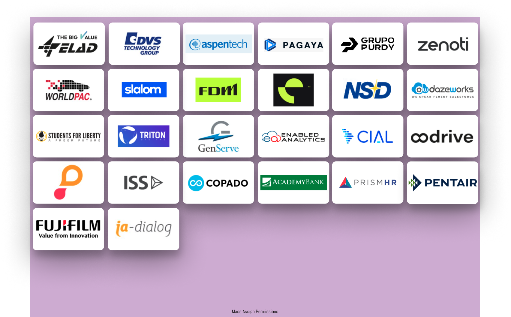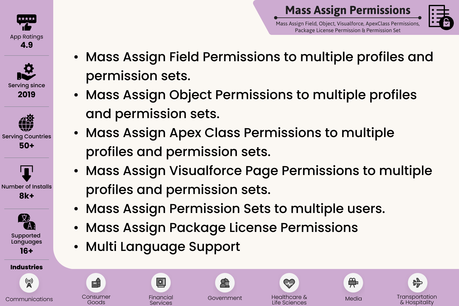 Admin & Developer ToolsMass Assign :##• Field, Object, VF Page & Apex Class Permissions to multiple profiles & permission sets.##• Package Licenses to Users by user name, user role name, profile, or groups.##• Multiple Custom, Standard, Managed Permission sets to multiple users