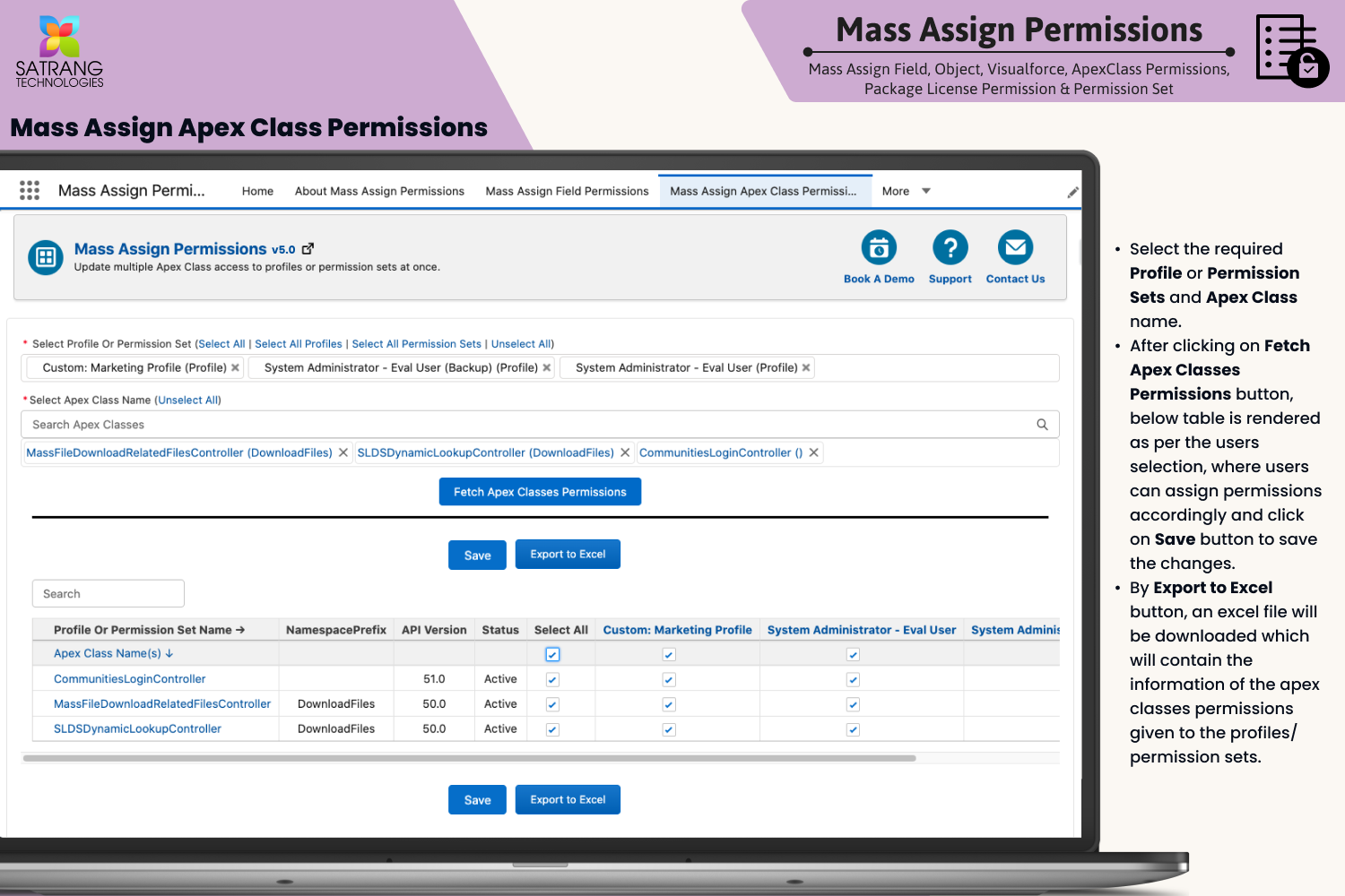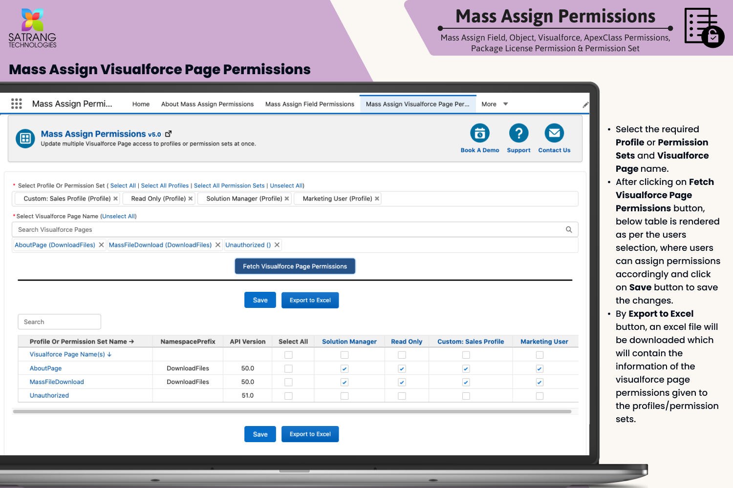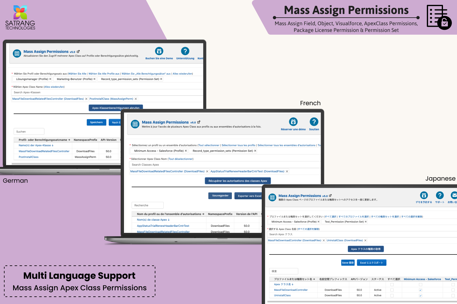 Admin & Developer ToolsMass Assign :##• Field, Object, VF Page & Apex Class Permissions to multiple profiles & permission sets.##• Package Licenses to Users by user name, user role name, profile, or groups.##• Multiple Custom, Standard, Managed Permission sets to multiple users